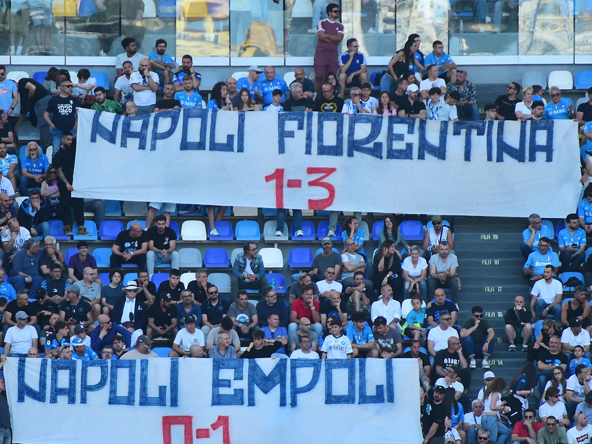 “Napoli-Fiorentina 1-3”. “Napoli-Empoli 0-1”. “Torino-Napoli 3-0”. “Napoli-Frosinone 0-4”. Emblematiche scritte apparse su alcuni striscioni nell’ultima partita in casa della squadra partenopea ex-campione d’Italia.