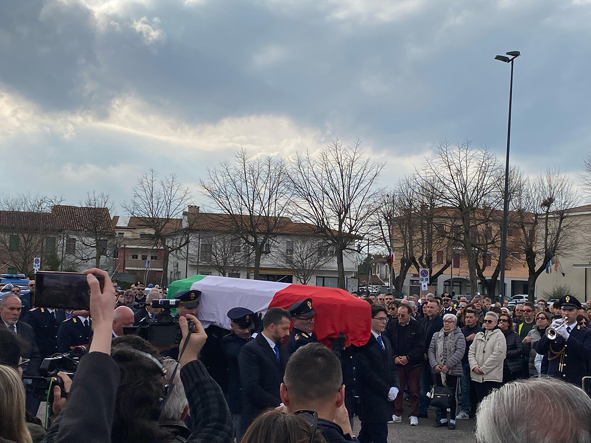 Un applauso composto e partecipato ha rotto il silenzio assordante nel quale si è rinchiusa oggi la comunità di Anguillara Veneta nel giorno dei funerali di Stato di Domenico Zorzino, il poliziotto – eroe che lo scorso 3 marzo si è gettato nel fiume Gorzone per tentare di salvare dalle acque l’anziano Valerio Buoso, a cui questa mattina è stato dato l’ultimo saluto.