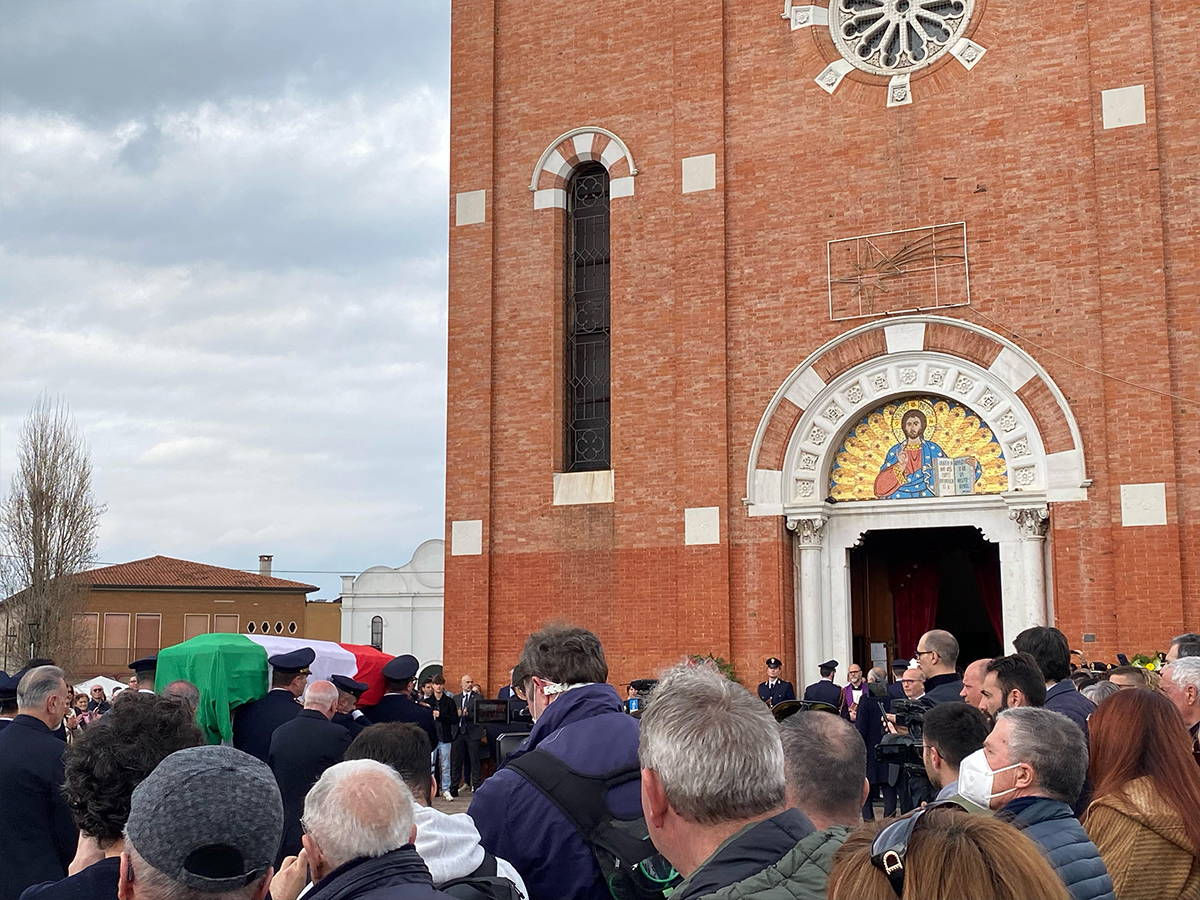 Anguillara Veneta. Celebrati dal vescovo Claudio funerali di Domenico Zorzino, il poliziotto–eroe morto nel fiume Gorzone