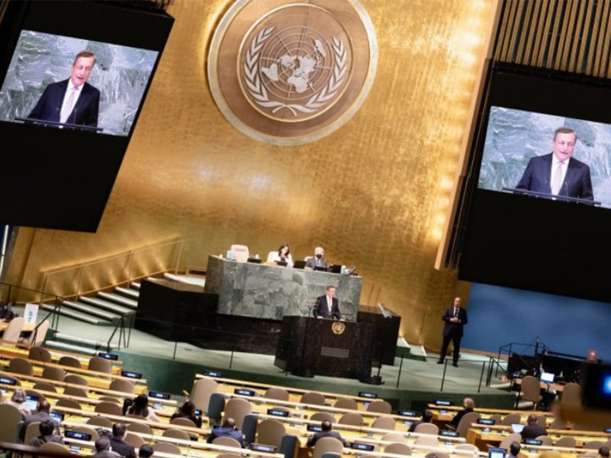 Mario Draghi si è rivolto ai capi di stato e di governo presenti alla 77ª Assemblea Generale dell’Onu ribadendo, ancora una volta, le drammatiche conseguenze della guerra tra Russia e Ucraina sul piano internazionale, mentre “l’esito del conflitto rimane imprevedibile” e richiede “responsabilità collettiva il trovare risposte”