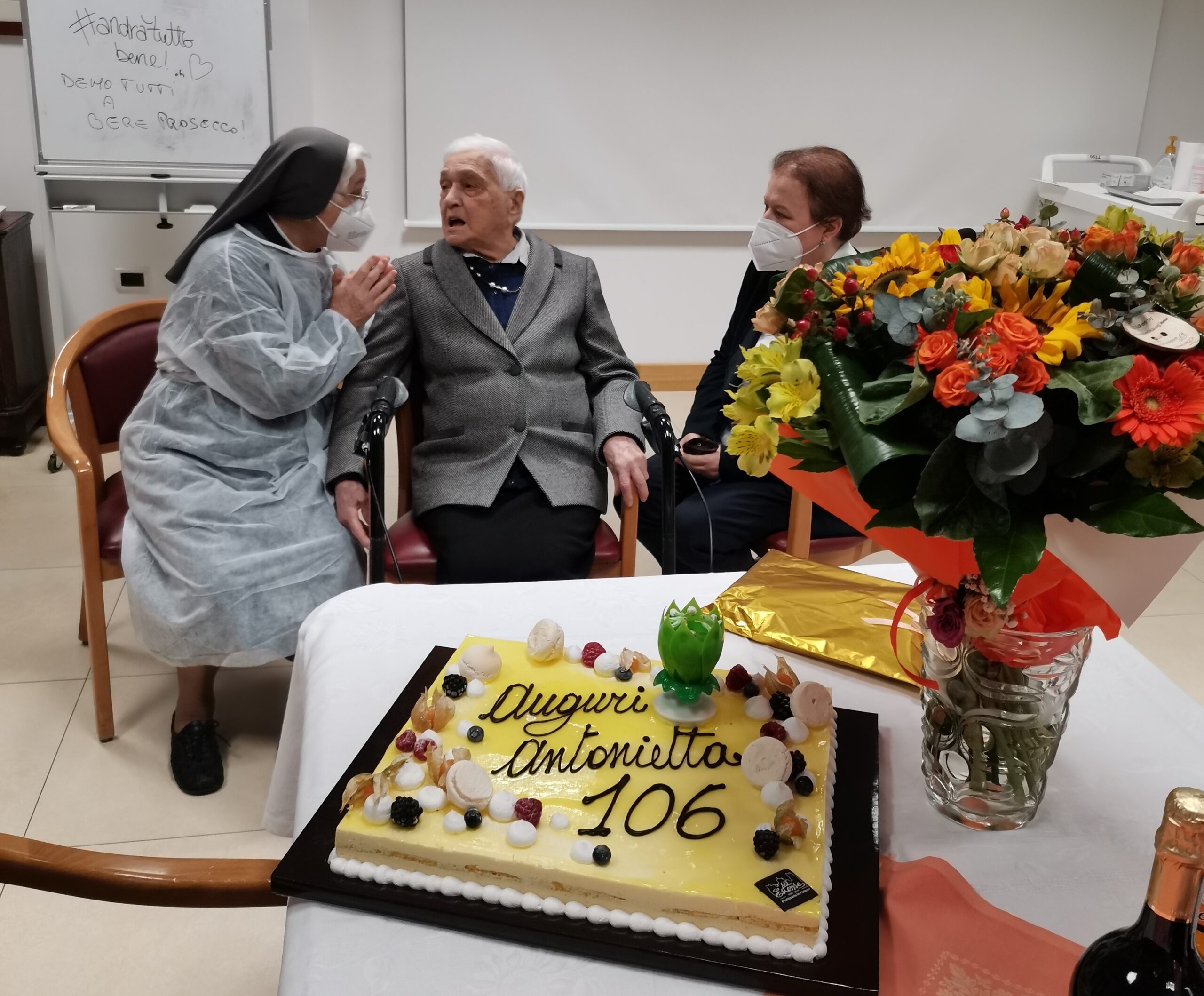 Antonietta Marcato è una delle donne più longeve d'Italia. Ha compiuto 106 anni nel centro residenziale Nazareth, dove si è trasferita poco prima superare la boa del secolo di vita. Il suo segreto? Un amore durato 51 anni, l'affetto dei figli, nipoti e pronipoti. Non tutti hanno potuto partecipare alla sua festa di compleanno, per motivi di sicurezza. Anche se lei, il Covid, l'ha già preso e, con un rigoroso rispetto del protocollo, anche superato.