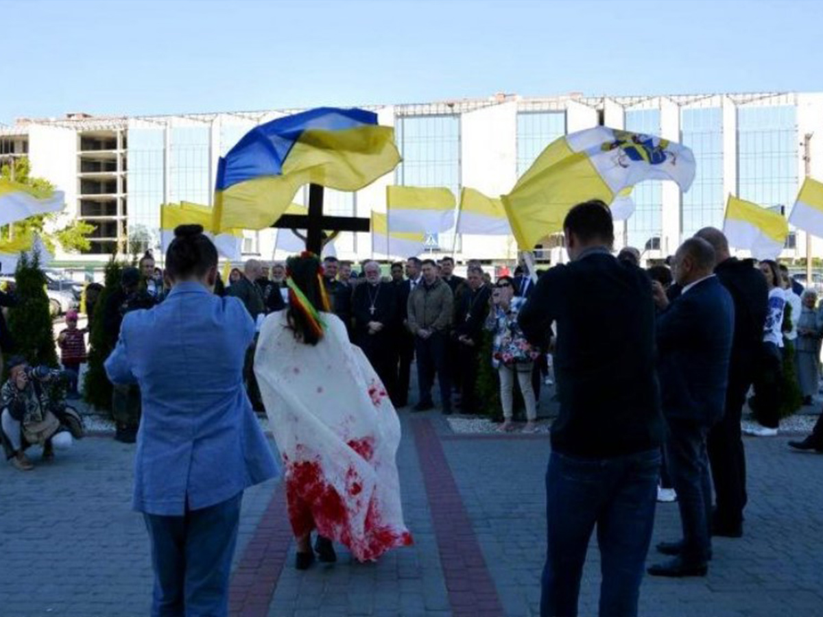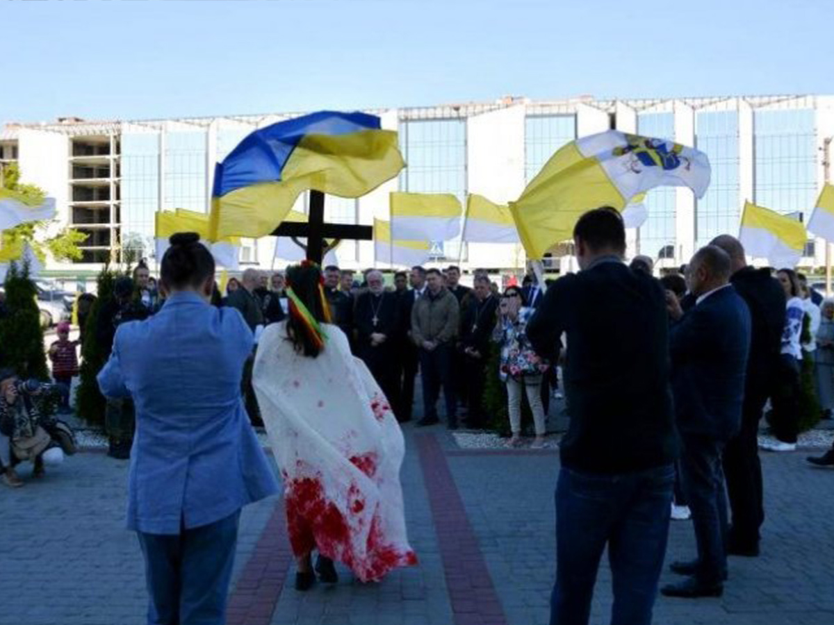 Una preghiera per i morti e per tutte le vittime della guerra ed una benedizione dalla terrazza della curia cattolica di Leopoli alla città e a tutto il popolo ucraino.
