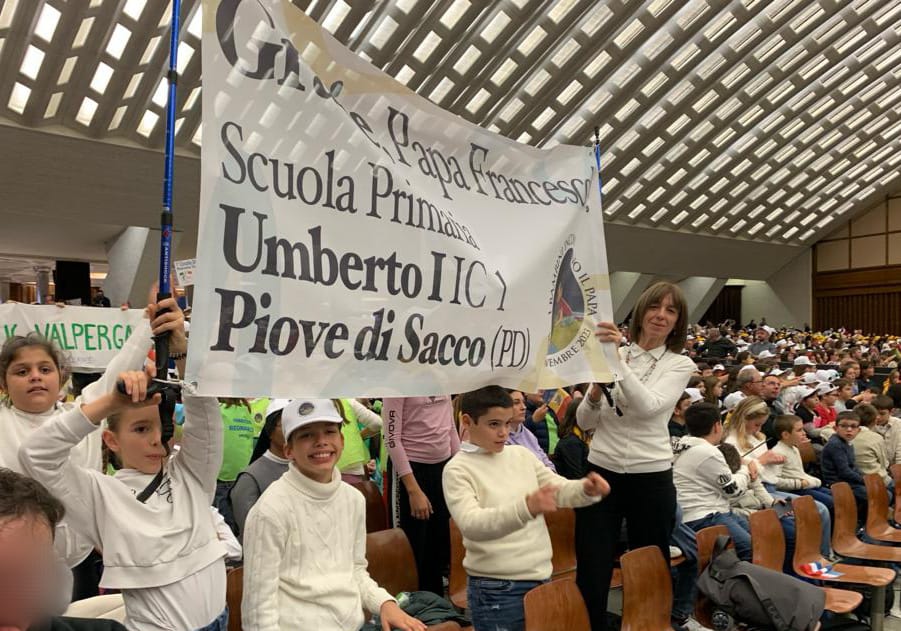 Un momento di festa che ha lasciato nei ragazzi che hanno partecipato un senso di fratellanza, gioia e universalità. Questo è stato l'incontro del 6 novembre con Papa Francesco per gli studenti delle classi terze, quarte e quinte della scuola primaria Umberto I del primo Istituto comprensivo statale di Piove di Sacco