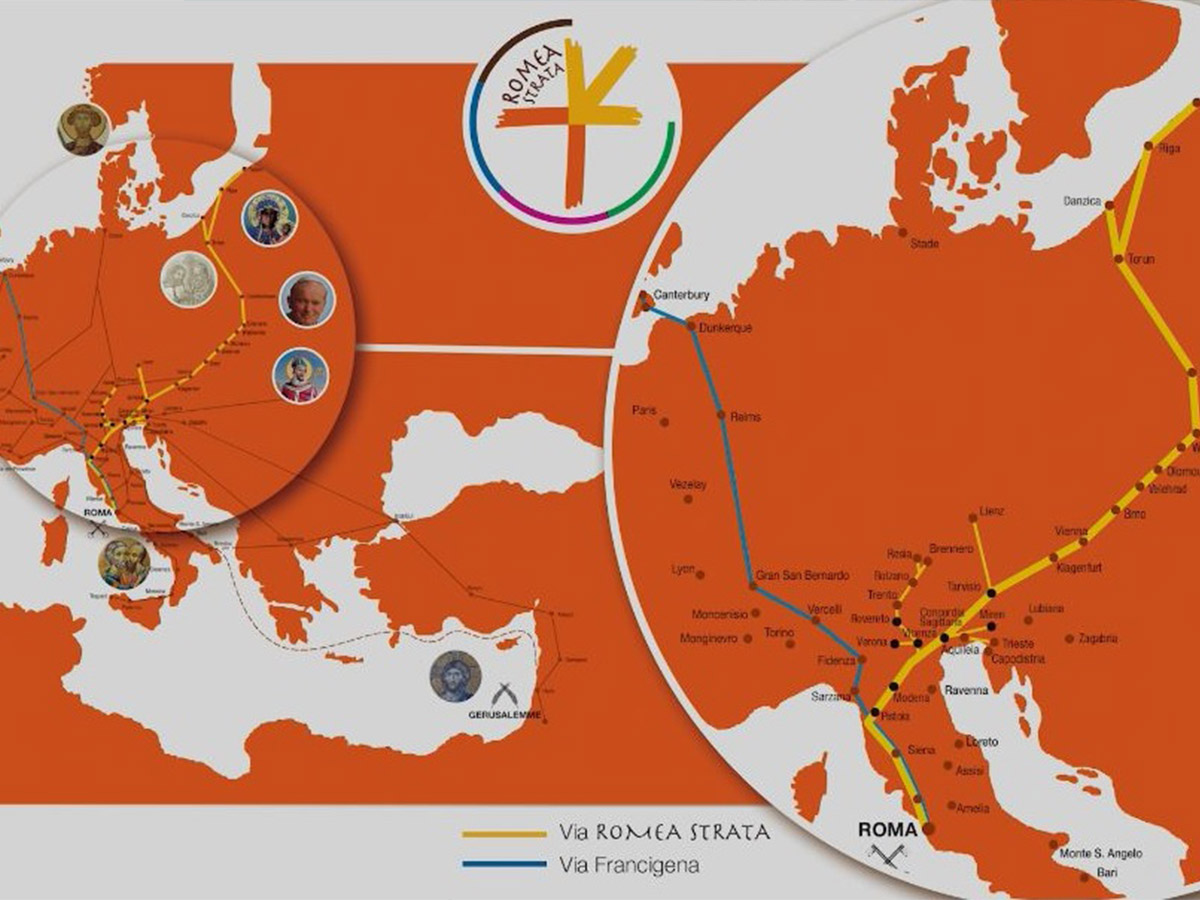 Sulle orme degli antichi pellegrini e viandanti, incrociando la via dell’ambra e la via della seta, la Romea Strata collega tre mari e attraversa Polonia, Repubblica Ceca, Austria e Italia