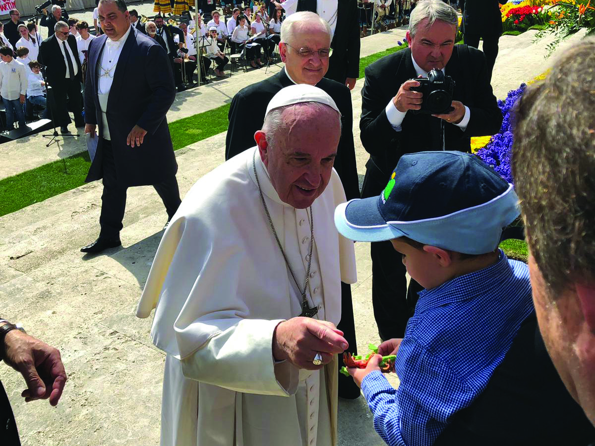 “È questi sono i tuoi amici?” È la domanda che Papa Francesco ha rivolto a Riccardo, il bambino di 4 anni guarito da Retinoblastoma che, nel donargli il testimone della “Staffetta per la Speranza” contenente quattro lettere di bambini e ragazzi sia in terapia sia guariti da patologie oncoematologiche, teneva in mano due dinosauri giocattolo.