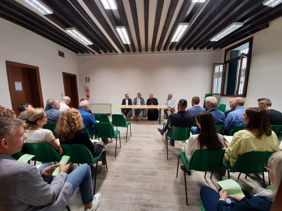 Oggi è venuto in visita il Vescovo di Padova, Monsignor Claudio Cipolla, presso la sede del Consorzio di bonifica Bacchiglione in via del Vescovado a Padova.