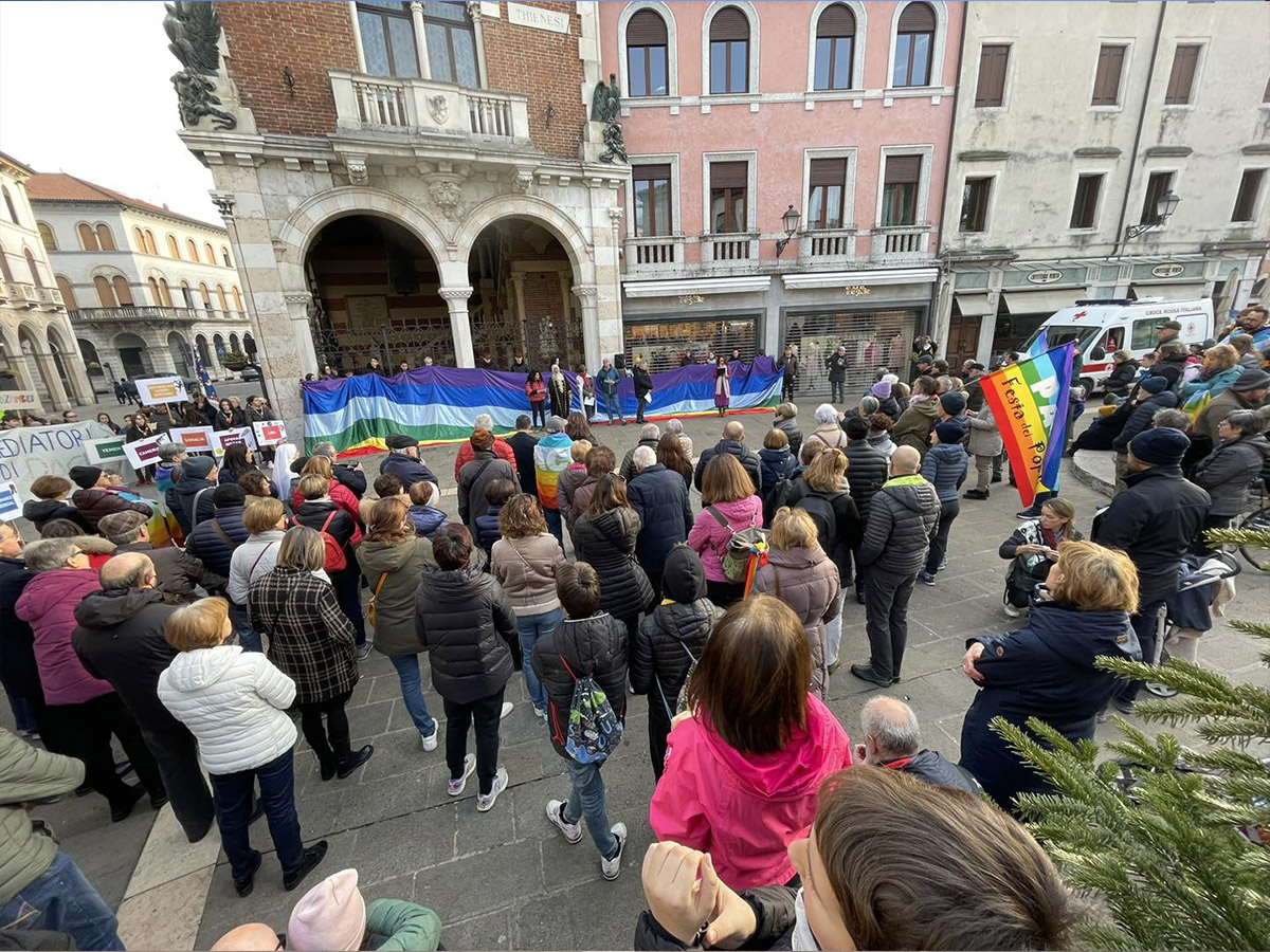 Domenica scorsa, a Thiene, si è tenuta la Marcia per la pace: oltre trecento i partecipanti con bandiere e cartelli che ricordano le numerose nazioni in guerra oggi.
