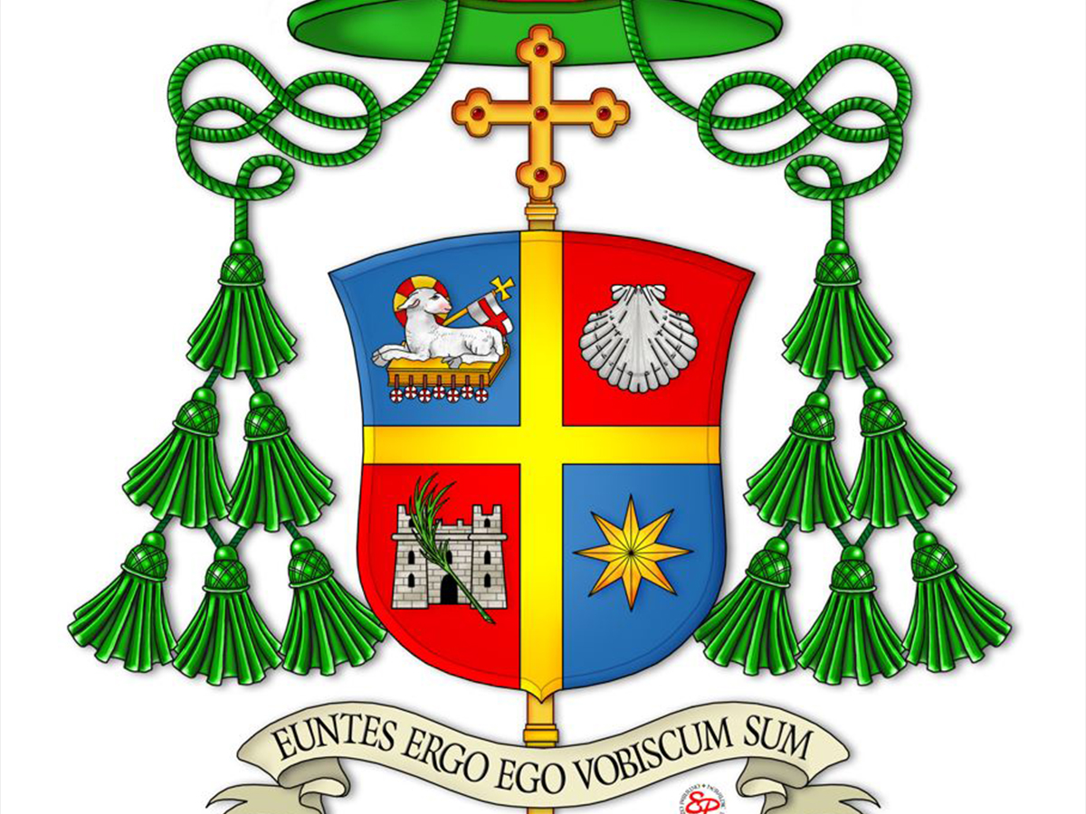 LO STEMMA.L’Agnus Dei, simbolo dell’innocenza e della mansuetudine, trova in Cristo il suo pieno compimento. Il Signore è l’Agnello immolato che dona la vita per i fratelli, modello di dono e di servizio che “ama sino alla fine”. È l’Agnello pasquale che reca i segni della vittoria della Risurrezione.