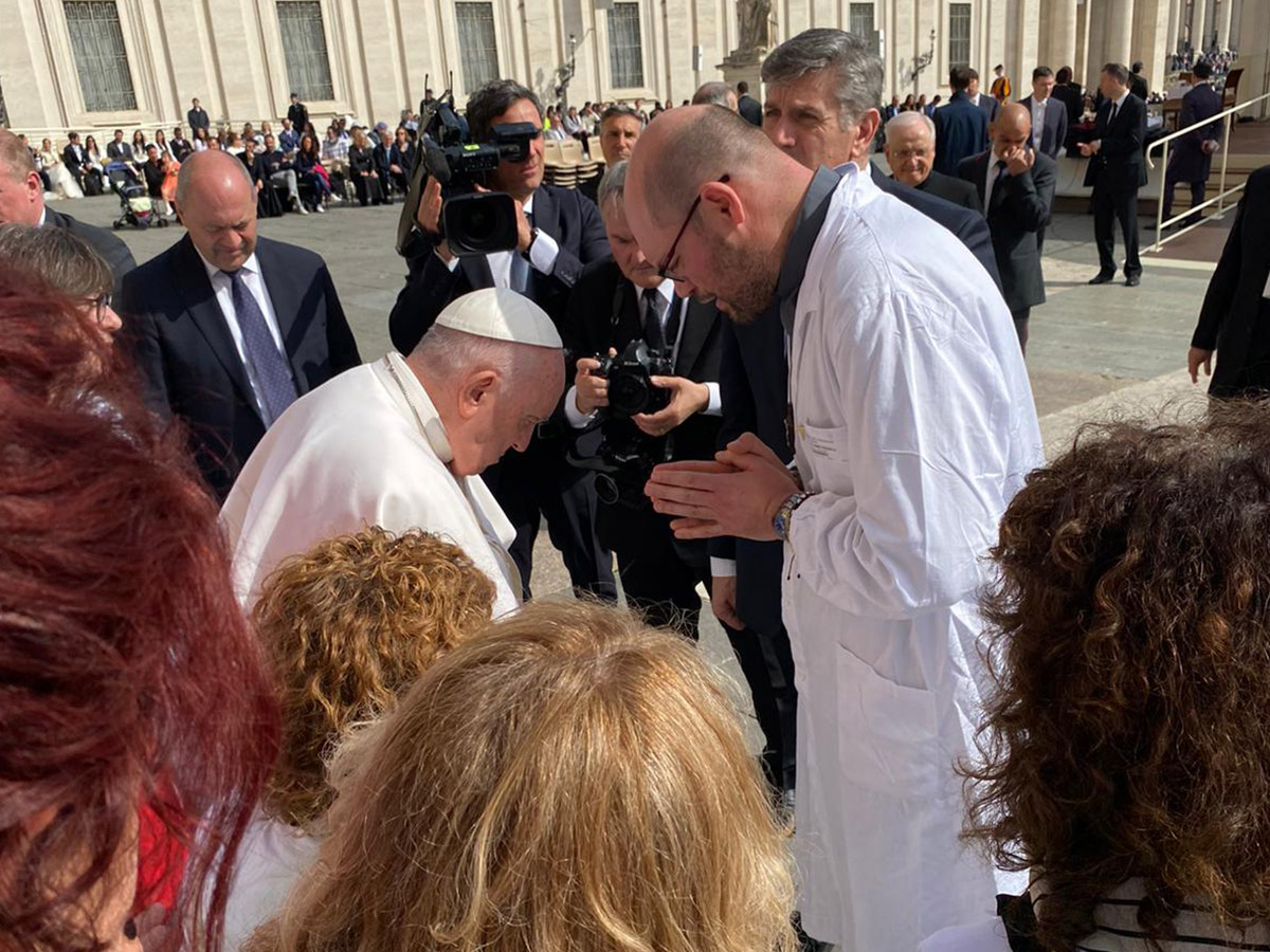 Alcune esperienze entrano di diritto nella storia e nella vita delle persone. Se poi, l’evento in questione, è quello di toccare con mano l’umiltà e l’umanità di una persona che è papa, a maggior ragione l’esperienza si memorizza non solo nella mente, ma, e ancor di più, nel cuore. 22 marzo 2023, udienza in piazza San Pietro, con una delegazione di 52 persone che lavorano nell’ospedale di Asiago, e che, dall’Altopiano partono la sera prima, accompagnate dal direttore sanitario dell’Ulss 7 Pedemontana Antonio Di Caprio, che sceglie di vivere l’esperienza con tutto il personale sanitario: una testimonianza straordinaria anche questa che ha fatto e fa un gran bene al nostro ospedale.