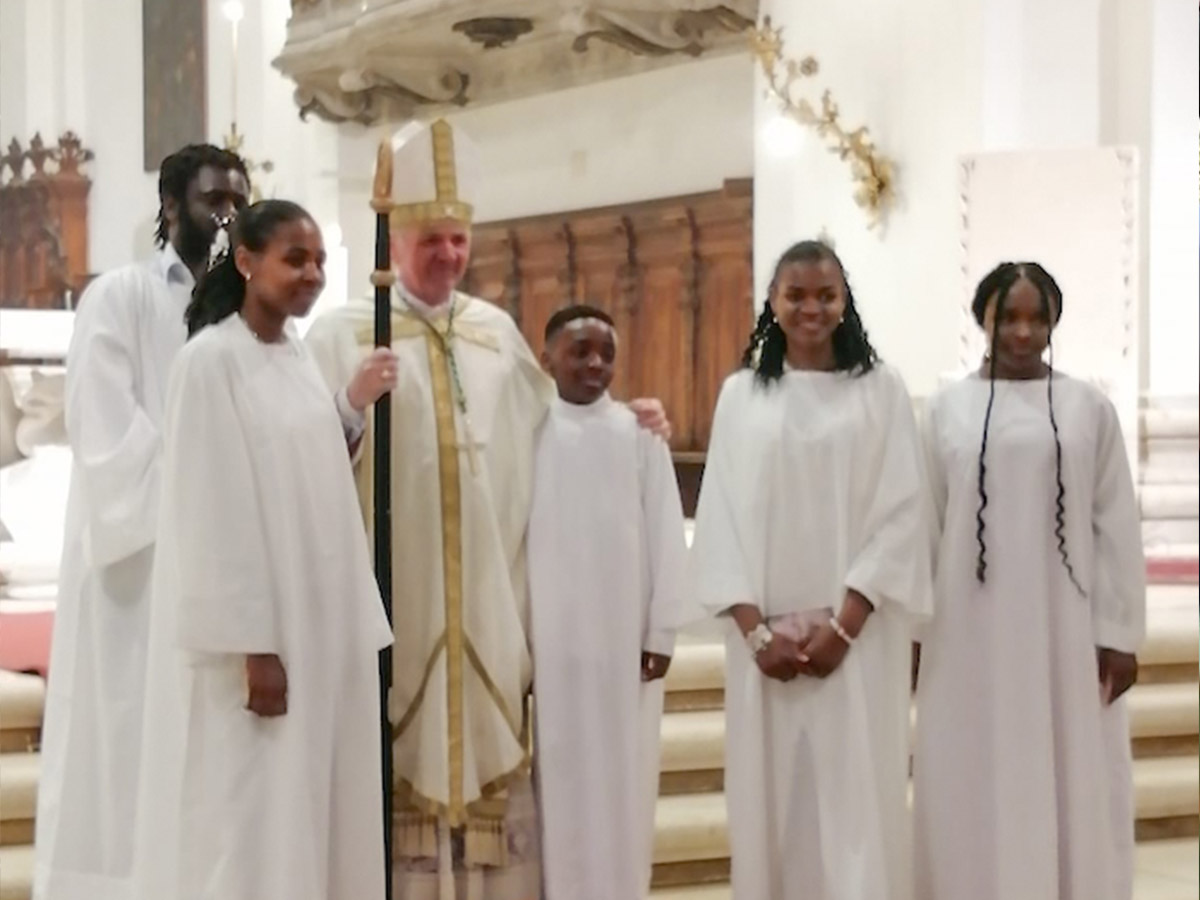 Nella foto il vescovo, insieme agli operatori e volontari delle Cucine in servizio, ha pranzato alla Cucine economiche popolari di Padova insieme a don Luca Facco, presidente della Fondazione Nervo Pasini e vicario episcopale per il territorio.