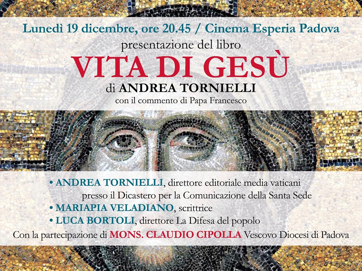 Lunedì 19 dicembre alle 20.45 al cinema teatro Esperia (via Chiesanuova 90, Padova) presentazione di Vita di Gesù, l’ultimo libro di Andrea Tornielli, direttore editoriale dei media vaticani presso il Dicastero per la comunicazione della Santa Sede.