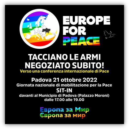 L'appuntamento è di fronte a Palazzo Moroni, sede del municipio di Padova, alle 17 per un sit-in. Nel frattempo, alcuni membri della delegazione consegneranno l'apello di Europe for Peace al prefetto Grassi. La manifestazione si inserisce nel quadro degli eventi che vedono coinvolte molte città fino a domenica 23 ottobre, prima della grande manifestazione nazionale del 5 novembre a Roma