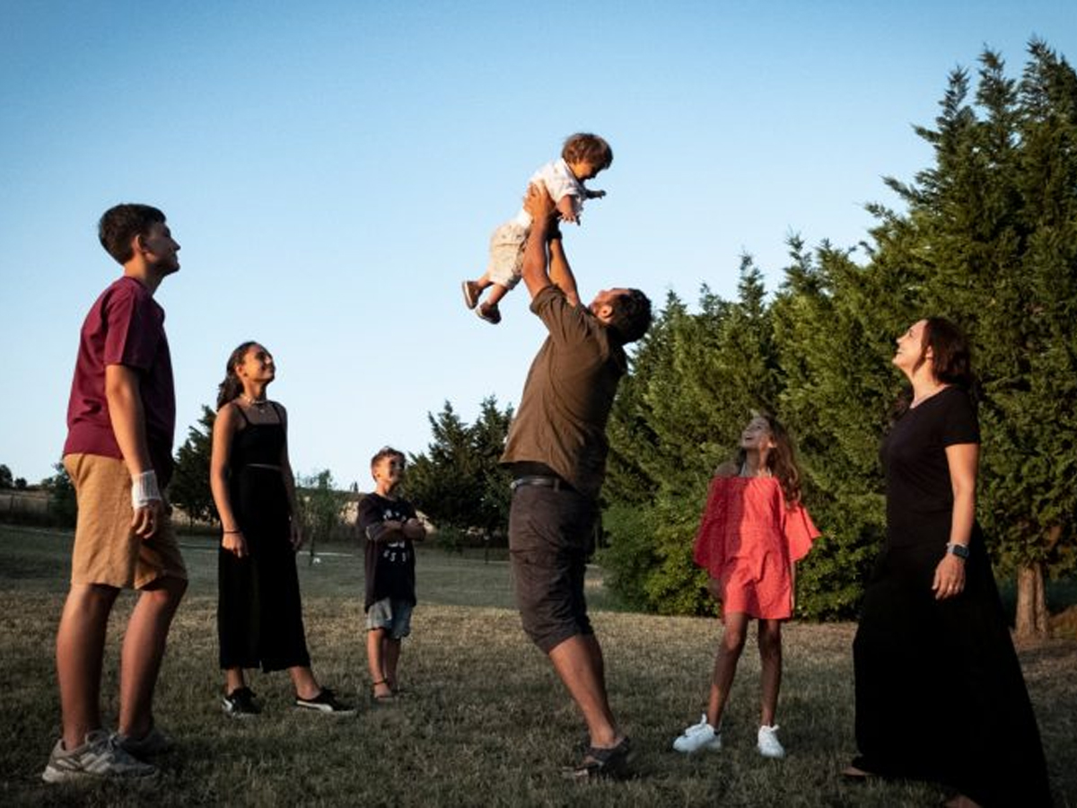 Cinque figli - Giovanni, Therese, Maddalena, Gabriele e Giorgio Maria - dai quindici ai due anni e mezzo. È la famiglia di Gigi De Palo, presidente nazionale del Forum delle associazioni familiari, e di sua moglie, Anna Chiara Gambini. Il più piccolo, Giorgio Maria, nasce con la sindrome di Down. "Lo abbiamo scoperto alla nascita. Questo ci ha liberati su due fronti: non abbiamo dovuto conoscere nostro figlio già con un’etichetta e siamo stati nella condizione di innamorarcene in modo libero", dice Anna Chiara