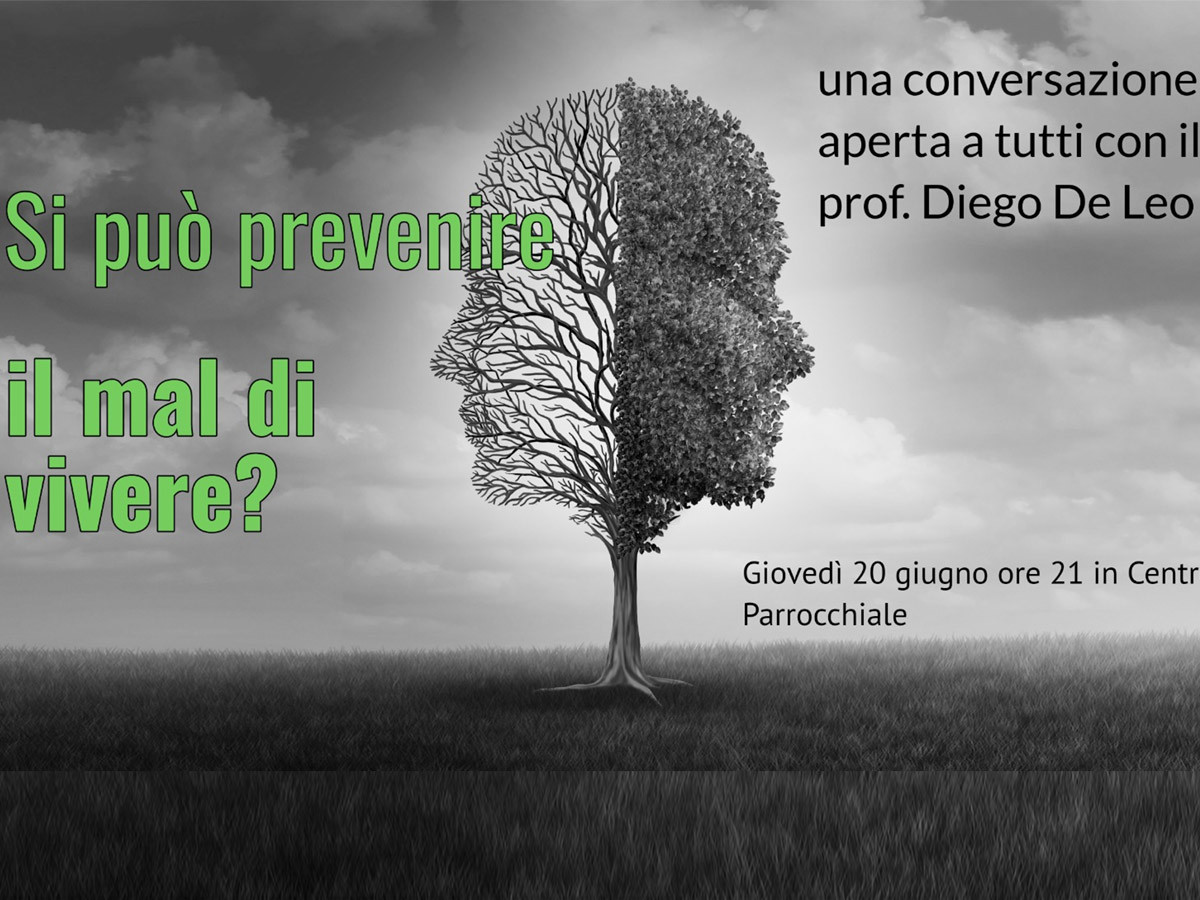 Importante incontro nel centro parrocchiale di Vigodarzere. Giovedì 20 giugno, alle 21, "Si può prevenire il mal di vivere?", una conversazione aperta a tutti con il prof. Diego De Leo.