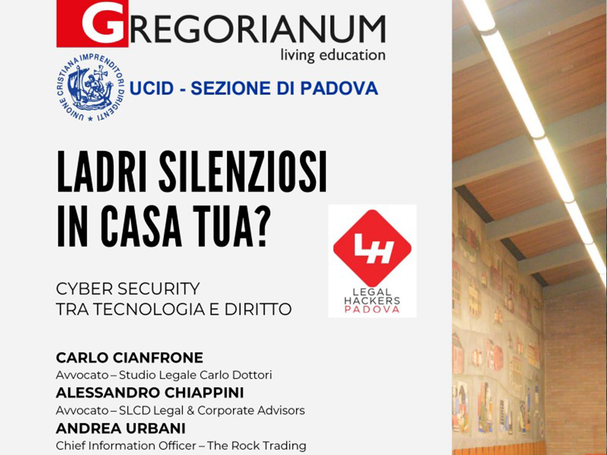 Si conclude con questo terzo appuntamento dedicato alla sicurezza informatica delle nostre identità, dei nostri dati e nelle nostre case, il ciclo di incontri organizzati da UCID Padova in collaborazione con il Collegio Universitario Gregorianum di Padova. In programma per giovedì 21 aprile: Ladri silenziosi a casa tua? Cyber security tra tecnologia e Diritto (ore 20.45 sede Gregorianum).