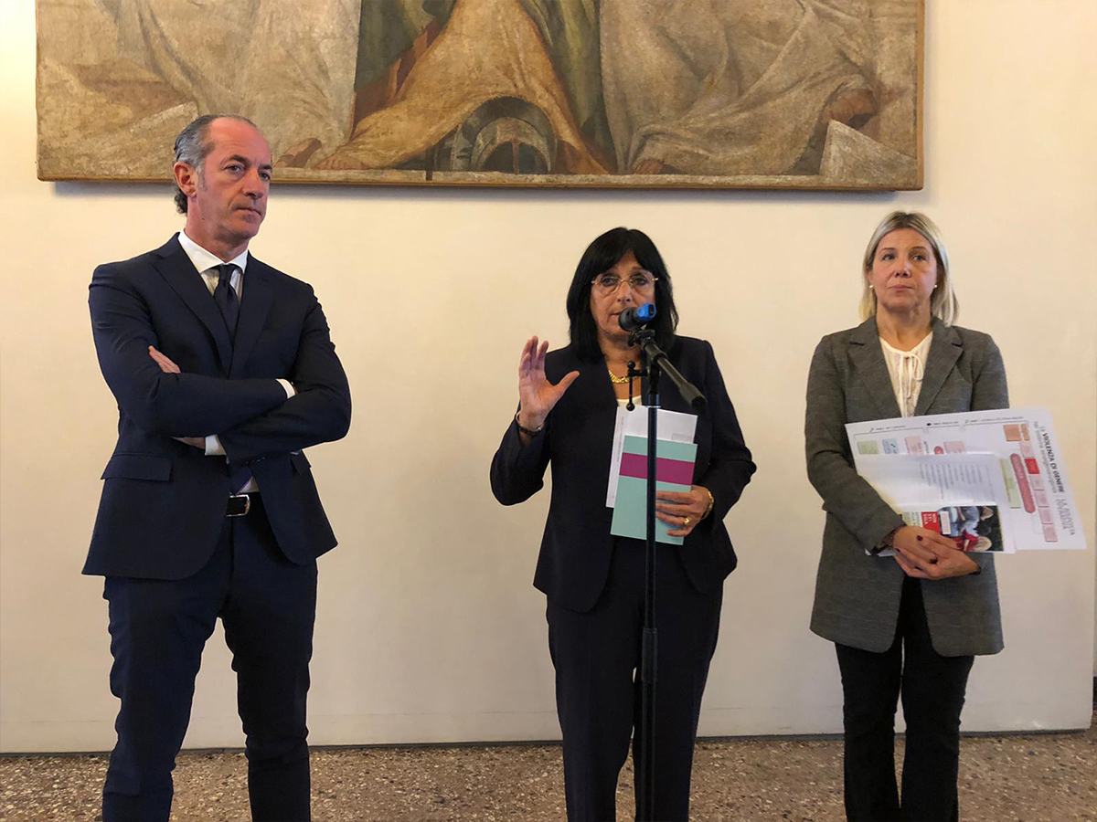 Tre giovani donne, di spalle, si abbracciano tenendosi per la vita. E’ l’immagine-simbolo della nuova campagna regionale “Non sei sola- Affidati alla rete” avviata dalla Regione Veneto d’intesa con la rete dei Centri antiviolenza.