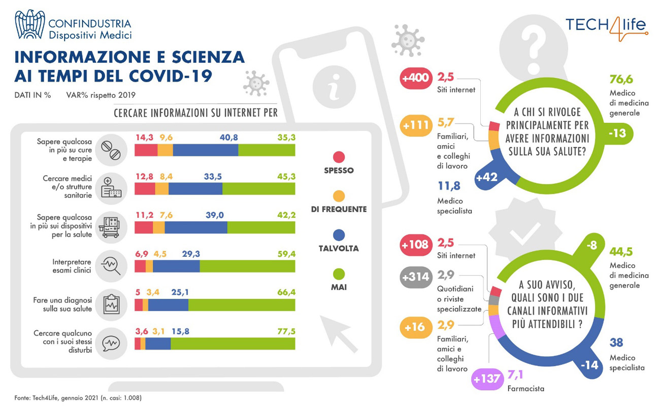 Il web è usato per cercare medici e ospedali sono invece in calo diagnosi in rete. Il primato dell’autorevolezza resta ai medici. Per il 44,5 per cento degli italiani nella top two dell’attendibilità c’è il medico di medicina generale, per il 38 per cento il medico specialista. Alta rispetto agli anni scorsi anche l'attendibilità riconosciuta al farmacista