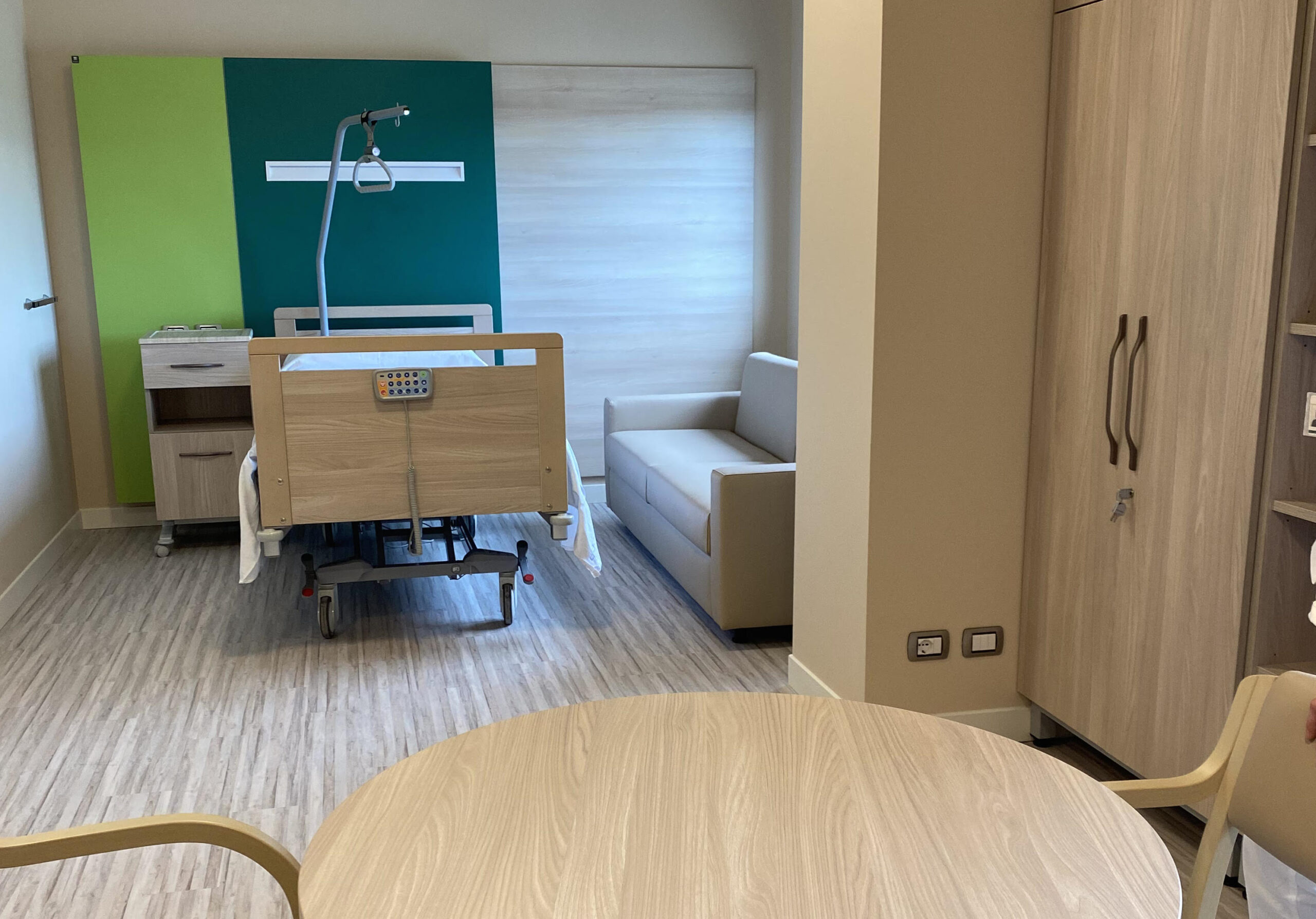 La struttura, dotata di sei posti letto, accoglierà i pazienti in fase avanzata di malattia oncologica. Stanze di degenza ariose e moderne assicurano momenti di intimità; mentre la sala comune, con una grande vetrata affacciata sul verde, funge da luogo d’incontro. Nella sistemazione degli ambienti è stato dato grande risalto a tutti gli elementi in grado di trasmettere il calore e l’accoglienza necessari all’assistenza dei pazienti sofferenti.