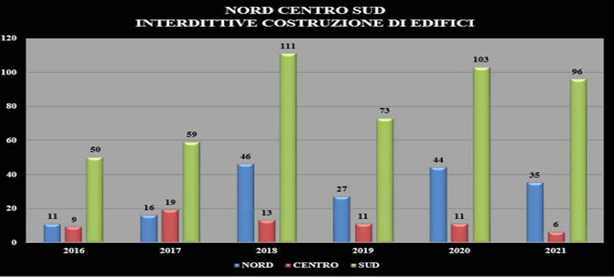Le interdittive antimafia nella costruzione di edifici sono passate da 70 nel 2016 a 158 nel 2020 e arrivano già a quota 137 a settembre 2021. A dirlo è il Report nato dalla collaborazione tra Polizia Criminale e Eurispes.