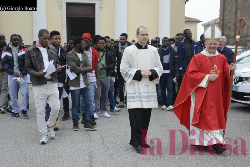 Cona. La via crucis, il vescovo, i migranti