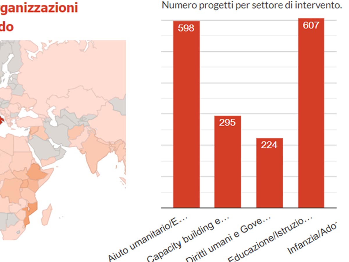 I dati aggiornati forniti dal portale Open Cooperazione. All'estero si conferma il primato dei Paesi africani. Educazione e istruzione i temi predominanti. Nel 2021 crescita economica del settore del 10 per cento