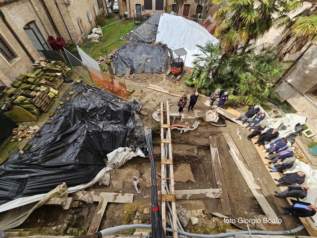 Un edificio absidato è stato ritrovato dagli archeologi che hanno appena concluso la campagna di scavi nel Chiostro dei Canonici, condotta dalla Soprintendenza di Padova. Tutta l'area è stata utilizzata con cimitero per secoli e sarà strategica in futuro per la visita del Battistero, della Cattedrale e del Museo.