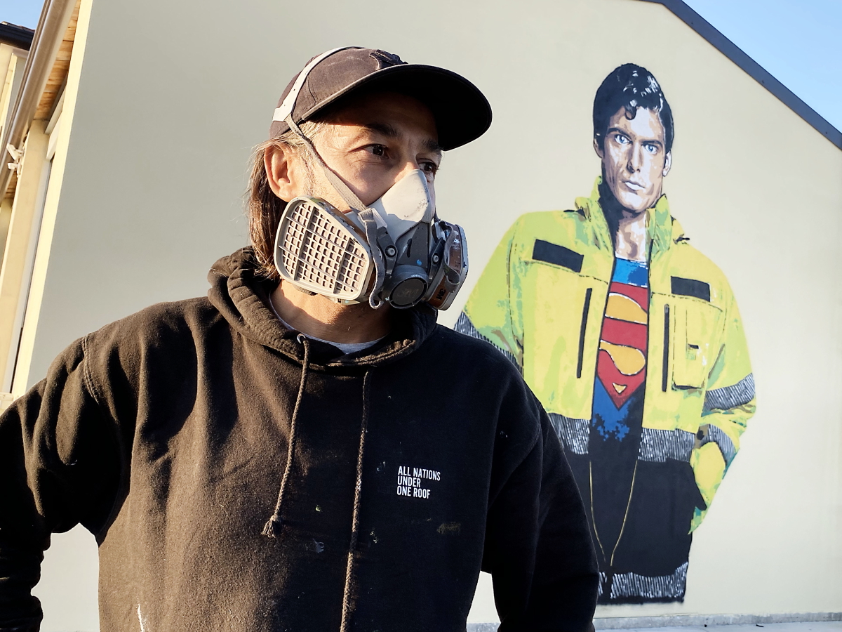 Dopo Wonder Woman ecco Superman: lo street artist Alessio-b omaggia i volontari della protezione civile di Padova