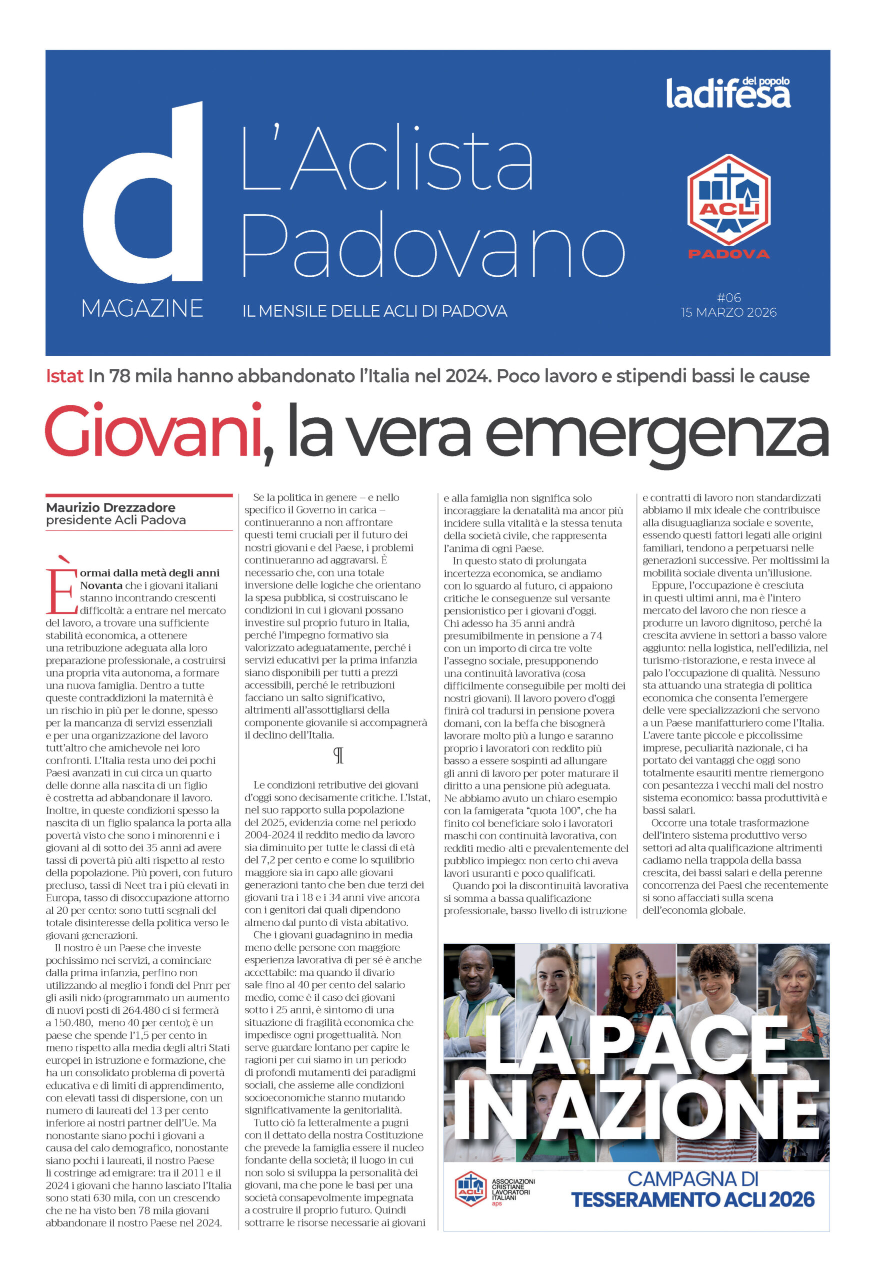 Istat. Sono i giovani la vera emergenza In 78 mila hanno abbandonato l’Italia nel 2024. Poco lavoro e stipendi bassi le cause Maurizio Drezzadore