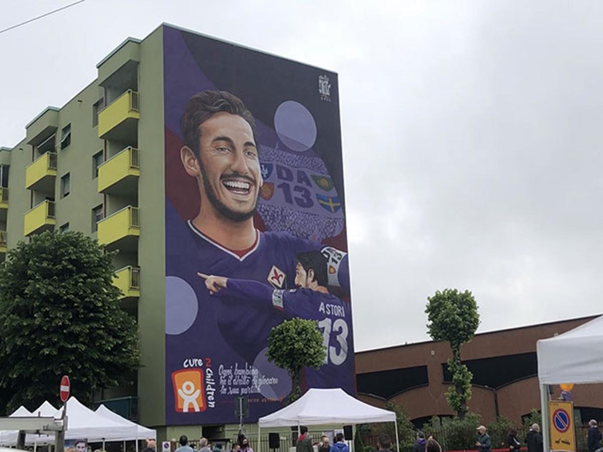 Un murale di 240 metri quadri sulla parate di un complesso residenziale per ricordare il capitano della Fiorentina scomparso tre anni fa