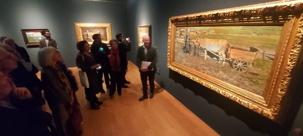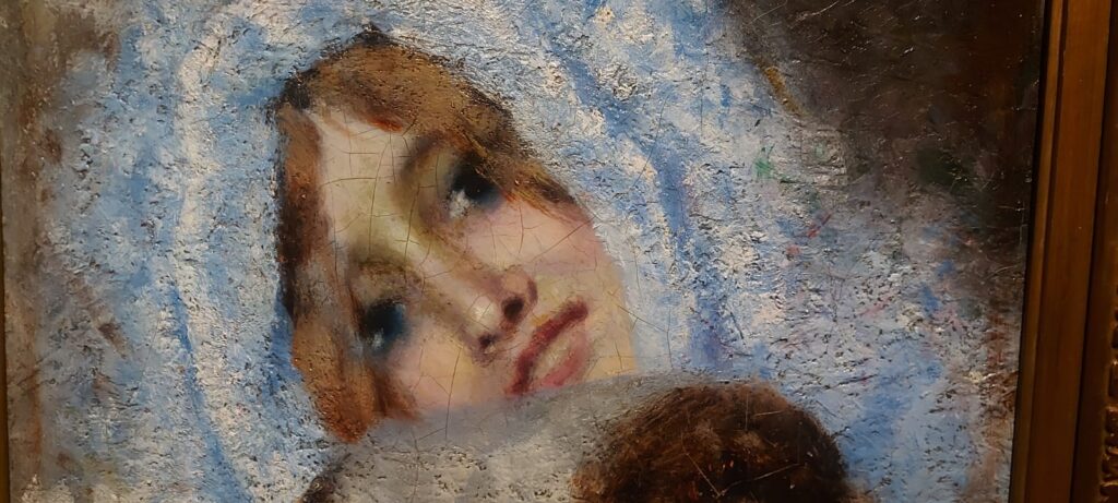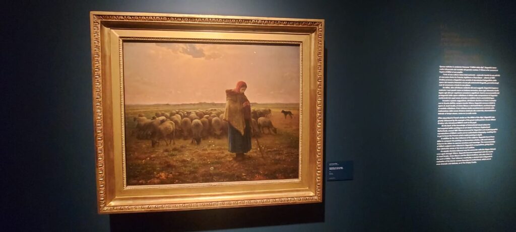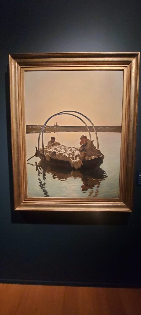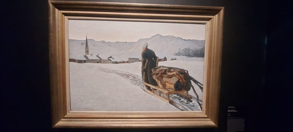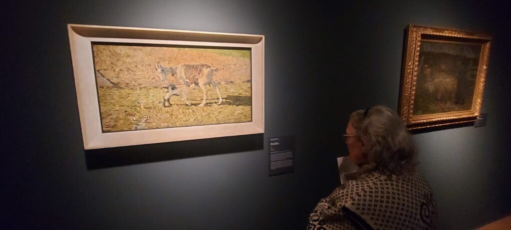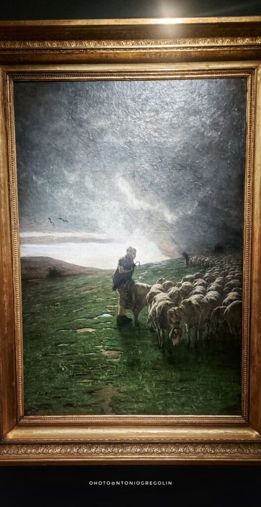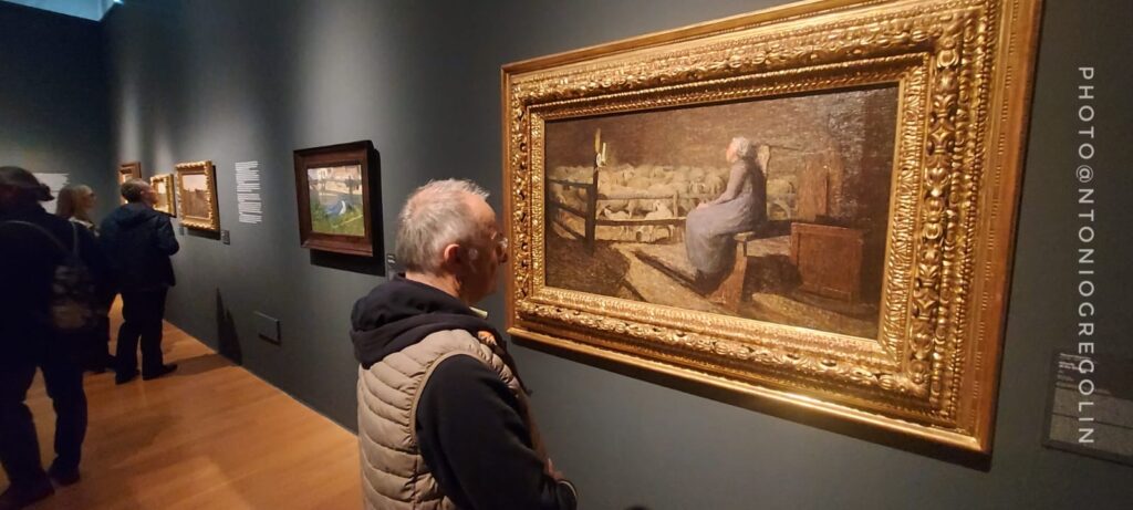 Le montagne sono il soggetto prediletto, ma il suo è un’anabasi anche quando due anni dopo ritrae l’opera iconica della mostra “Ave Maria a strabordo” che risente molto dello stile dettato da Jean-Francos Millet. È il tempo del “divisionismo” che poi passa dal tratto di matita su carta, alle pennellate nette e divise con colori primari sulla tela. Qui la mostra diventa una retrospettiva, dove una serie di disegni di Vincent Vang Gogh, Matthiijs Maris, Jean-Francois Millet sulla figura del seminatore, esternano la via incontrovertibile presa da Segantini, che lascia al visitatore quel senso di intima estasi, orante e nostalgica per un tempo sfuggevole, ben riassunto nell’opera “Ritorno al bosco” o “All’ovile”. Quadri che una volta visti dal vero, diventano immortali nella mente di chi in tempi moderni cerca serenità e pace. Da questo nasce l’affermazione “memorabile” che si è guadagnata la mostra di Bassano.