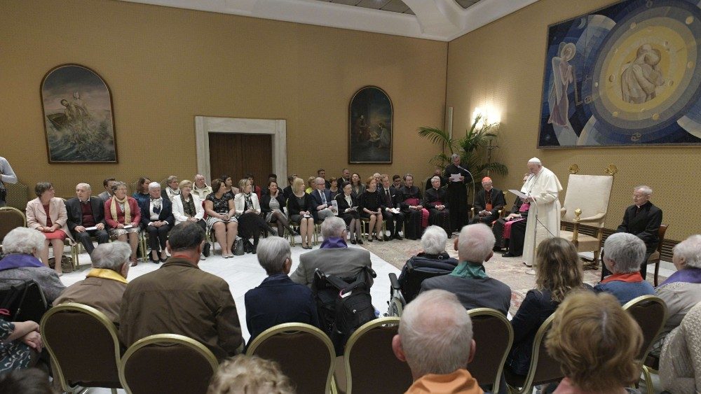 Papa Francesco ha ricevuto gli anziani con diagnosi di demenza di Alzheimer ospiti di una Casa di riposo di Bonheiden, in Belgio. Qui il gruppo si ritrova ogni giorno per cantare e per pregare ed è nata così l'attività del coro Arcobaleno, che ha cantato per il papa poco prima dell'udienza generale. Per queste persone cantare insieme rappresenta un forte legame con il presente e quindi un modo per contrastare la malattia.