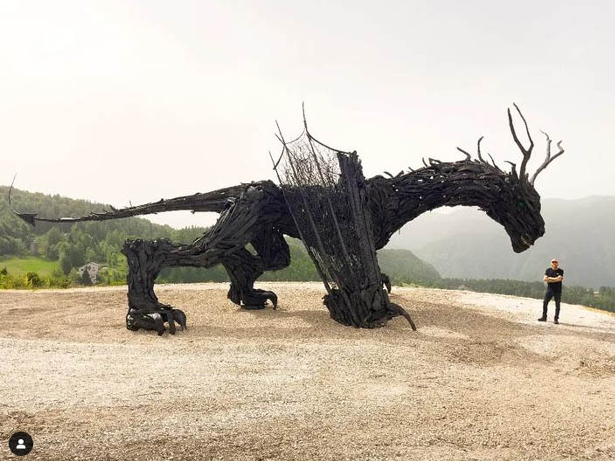 Tre mesi più tardi ecco che il Drago Vaia, quasi come uscito da quell’uovo in fiamme, è tornato sull’altopiano di Lavarone. “Con le sue 6 tonnellate di legno carbonizzato – ha scritto Martalar su Ig – 16 metri di lunghezza e 7 in altezza, è la scultura di drago in legno più grande del mondo. Realizzato con le radici della tempesta Vaia porta con sé la memoria di quello che è successo al suo predecessore”. “Questo nuovo Drago – aggiunge l’artista veneto – non è solo a monito del rapporto tra essere umano e natura, ma è custode di memoria, di storie, un simbolo di rinascita e resilienza dove noi esseri umani dovrebbero sempre restare umili davanti a madre natura”.
