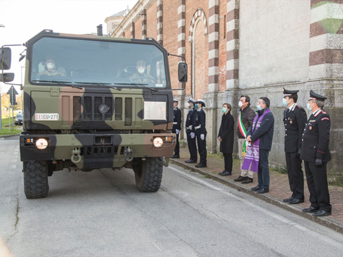 Padova ha accolto oggi 25 feretri provenienti da Bergamo, città straziata dall’emergenza Coronavirus.