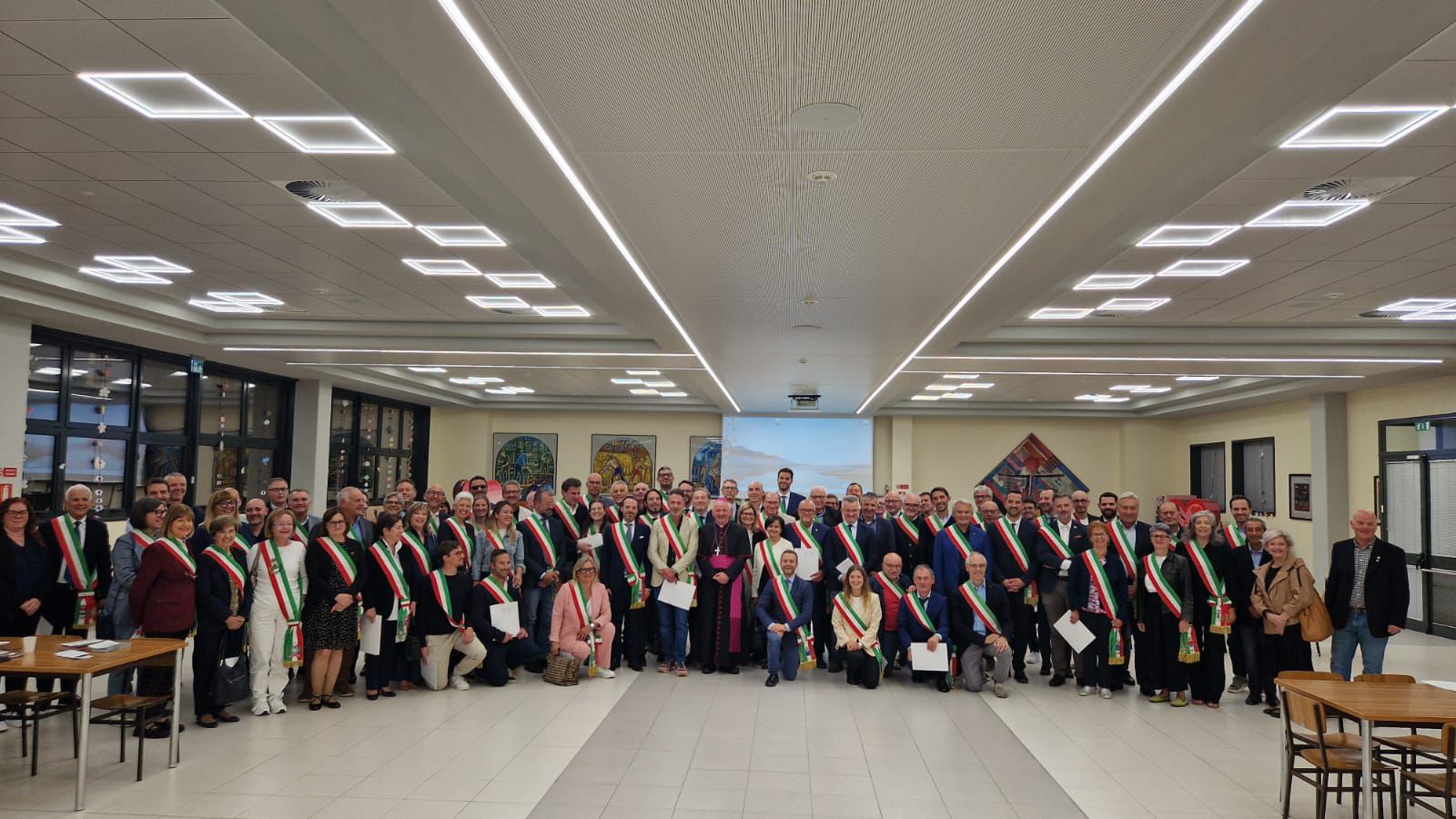 Il vescovo Claudio ha esordito ringraziando i sindaci per il loro servizio e la loro numerosa presenza ed entrando nel tema della giornata si è concentrato sull’aspetto comunicativo del problema: «La politica fatica a trovare linguaggi e modalità diverse dalla polarizzazione delle posizioni, dall’arroccamento talvolta pretestuoso e paralizzante; con forme di attacco all’avversario, che impediscono di vedere nell’altro una controparte con cui confrontarsi. Purtroppo anche nelle relazioni interpersonali l’atteggiamento di difesa dall’altro sfocia in eccessi di indifferenza o di aggressività. Anche verso le istituzioni è così: dall’ignorarle sfruttandone i benefici e spesso senza il rispetto delle regole, al farne oggetto di pretese e attacchi. In tutto questo la comunicazione tutta e in particolare sui social non aiuta, e credo sia uno spazio su cui siamo chiamati a vigilare e a dare l’esempio, perché gran parte della vita delle persone si consuma sui social e gran parte del pensiero si alimenta delle notizie, delle opinioni e delle conversazioni che vengono postate nei vari profili».