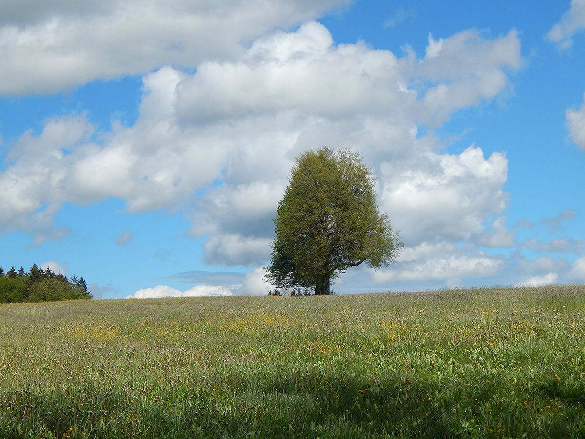 Come nella foto che allego, scattata durante un’escursione proprio nel giorno di Pentecoste, in quest’altura di quasi mille metri, oltre questo albero che svetta nel prato erboso, oltre le nuvole all’orizzonte… Cristo è sempre “oltre”.