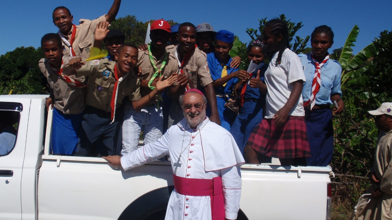 È l’unico vescovo italiano in Madagascar. Mons. Rosario Saro Vella, missionario salesiano, dal 2019 guida la diocesi di Moramanga, una cittadina ad un centinaio di chilometri dalla capitale Antananarivo. Vive in Madagascar da 45 anni e ha cambiato varie diocesi. Per lui la grande isola nell’Oceano Indiano è ormai una seconda patria. La sua diocesi al centro del Paese è estesa quanto metà Lazio e ha più di mezzo milione di fedeli, tra povertà croniche, speranze di rinascita e una popolazione giovane in fermento. Alla fine del 2021 gli abitanti del Madagascar erano circa 28 milioni tra cui 9 milioni di cattolici, pari al 32.2% della popolazione. Contati allora 2.000 sacerdoti, 6.400 religiosi e religiose, 500 parrocchie e migliaia di missioni. Cinque i vescovi stranieri all’interno della Conferenza episcopale: due polacchi, un portoghese, uno spagnolo e un italiano.