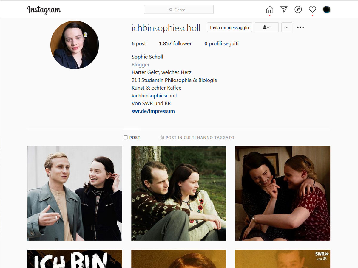 Sul canale Ig @ichbinsophiescholl verranno raccontati, attraverso un diario di post e stories in tempo reale, gli ultimi dieci mesi di vita di Sophie.