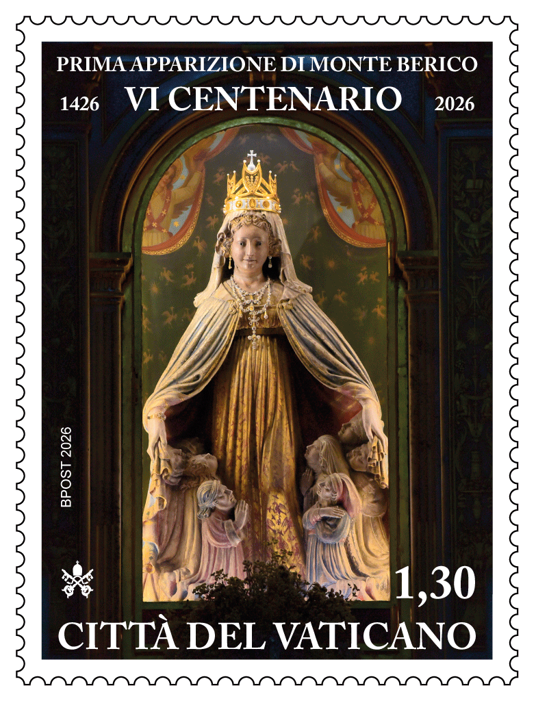 “La tradizione – recita il comunicato del Servizio Poste e Filatelia del Governatorato dello Stato della Città del Vaticano – fa risalire l’apparizione della Madonna al 7 marzo 1426, giorno in cui la Vergine si rivelò a Vincenza Pasini, un’umile donna vicentina, in un periodo segnato da una grave epidemia di peste. Maria invitò la popolazione alla preghiera, alla conversione e alla penitenza”. La Madonna apparve nuovamente a Vincenza Pasini due anni dopo, il primo agosto 1428, chiedendo l’edificazione di una chiesa in suo onore sul colle di Monte Berico. La costruzione venne avviata nello stesso anno.