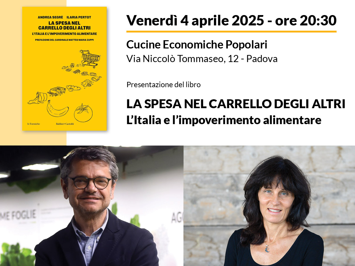 Presentazione del libro “La spesa nel carrello degli altri” di Andrea Segrè e Ilaria Pertot, venerdì 4 aprile alle Cucine popolari di Padova. Dialogo con la Dg Antonia Ricci.