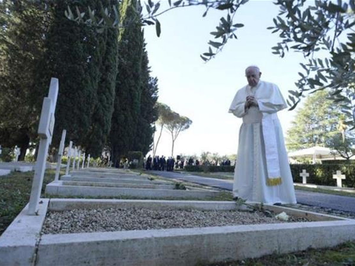 “Fermatevi, fratelli e sorelle, fermatevi! Fermatevi, fabbricatori di armi, fermatevi!”. Così il Papa, nell’omelia della Messa per i defunti, presieduta al Cimitero Militare Francese di Roma e pronunciata a braccio, ha dato voce alle tombe presso le quali, prima della celebrazione eucaristica, ha sostato in preghiera.