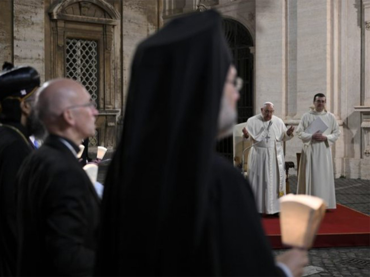 Nell’omelia della preghiera ecumenica con i partecipanti al Sinodo, data per letta, il Papa cita i padri del Concilio Vaticano II per ricordare che “il movimento ecumenico è nato dal desiderio di testimoniare insieme, con gli altri e non lontano gli uni dagli altri, o peggio ancora gli uni contro gli altri”. “In questo luogo i Protomartiri ci ricordano che oggi, in molte parti del mondo, cristiani di diverse tradizioni danno la vita insieme per la fede in Gesù Cristo, vivendo l’ecumenismo del sangue”, il riferimento all’attualità: “La loro testimonianza è più forte di qualsiasi parola, perché l’unità viene dalla Croce del Signore”. “Oggi esprimiamo la vergogna per lo scandalo della divisione dei cristiani, lo scandalo di non dare insieme testimonianza al Signore Gesù”, il mea culpa di Francesco, secondo il quale “questo Sinodo è un’opportunità per fare meglio, superando i muri che ancora esistono tra noi”. “Concentriamoci sul terreno comune del nostro comune battesimo, che ci spinge a diventare discepoli missionari di Cristo, con una comune missione”, l’invito finale: “Il mondo ha bisogno di una testimonianza comune, il mondo ha bisogno che siamo fedeli alla nostra comune missione”.