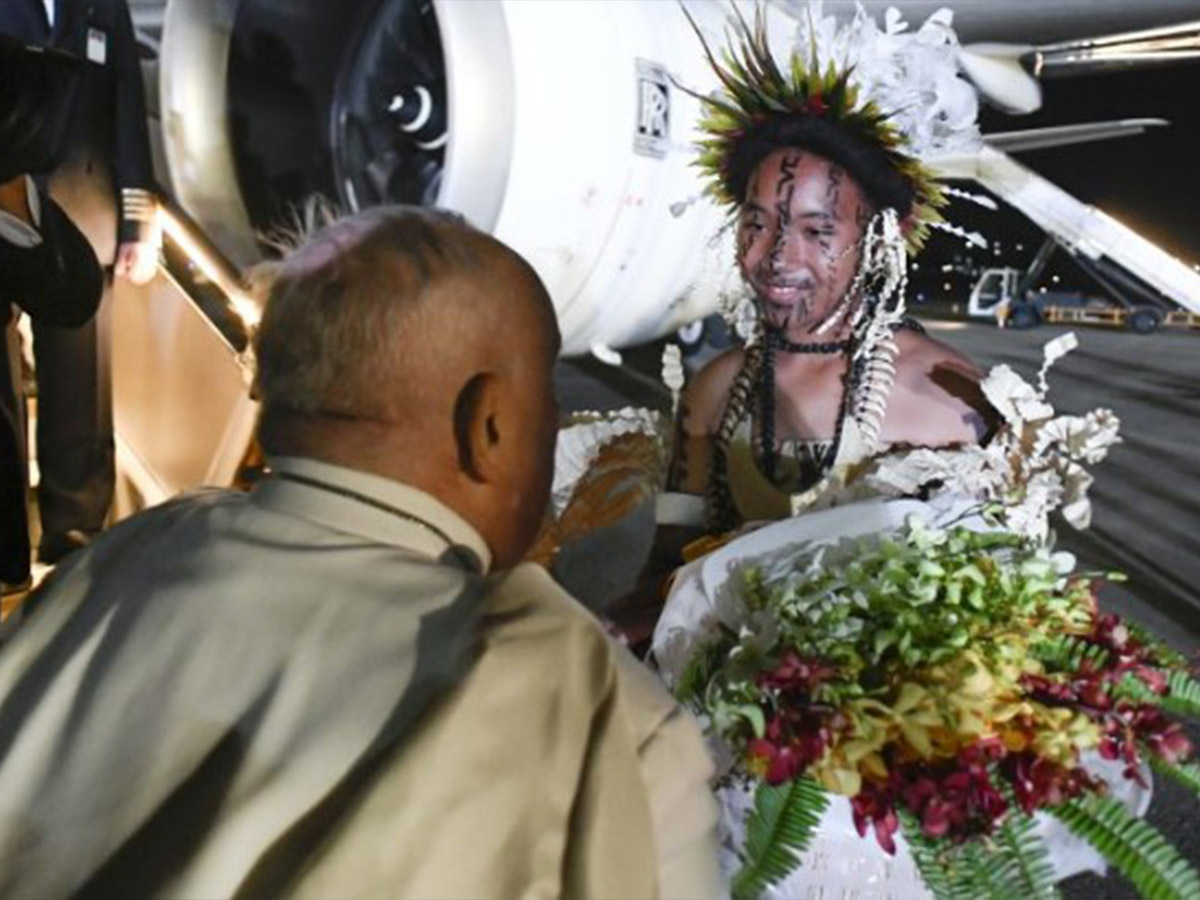 Il Papa è atterrato a Port Moresby, intorno alle 19 (le 11 ora di Roma). Al suo arrivo all’aeroporto, è accolto dal vice primo ministro e da due bambini in abito tradizionale che gli hanno offerto dei fiori.