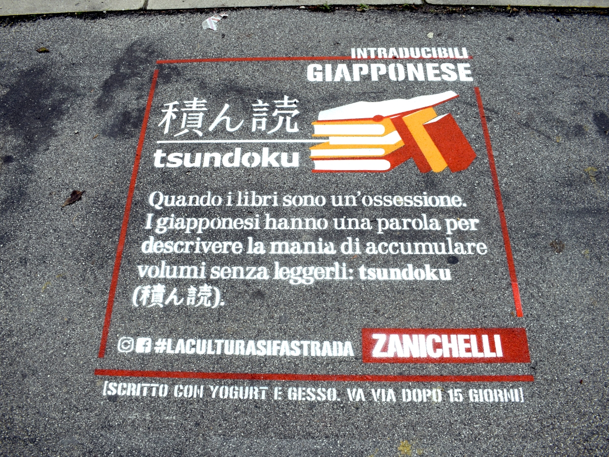 Sapete che in giapponese esiste un’unica parola per indicare un accumulatore seriale di libri, spesso senza leggerli? È “Tsundoku”. In tedesco, invece, con un semplice lessema “Fernweh” si fa riferimento alla nostalgia che si prova per paesi lontani. Sono vocaboli “intraducibili”, ovvero parole di altre lingue che non hanno un corrispondente diretto in italiano e che per essere tradotte è necessaria una perifrasi più o meno lunga. Queste e molte altre sono apparse negli ultimi giorni di ottobre grazie all’iniziativa promossa dalla casa editrice Zanichelli che ha dato inizio a una campagna di sensibilizzazione sulla lingua, italiana e straniera. Direttamente sui marciapiedi.