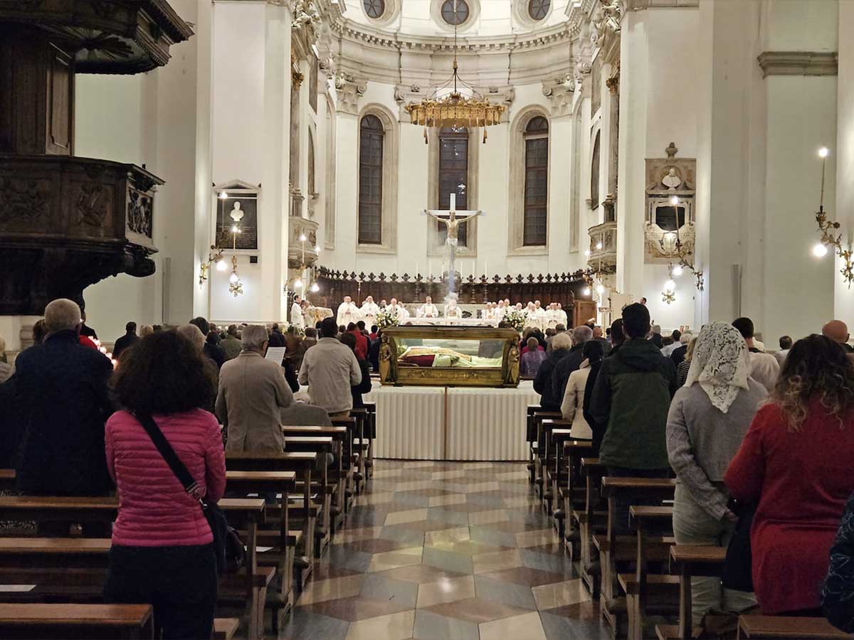 Chissà quante volte il giovane Giuseppe Melchiorre Sarto avrà varcato la soglia della Cattedrale di Padova. In fondo, era solo a due passi dal luogo dove, dal 1850 al 1858, si è formato come uomo e come presbitero: il Seminario Vescovile. A 120 anni dalla sua elezione a papa, con il nome di Pio X, in Cattedrale ci è tornato. Proprio al centro... Lì, lunedì 16 e martedì 17 ottobre, in molti hanno reso omaggio al santo, le cui reliquie hanno compiuto una peregrinatio corporis nelle tre Diocesi venete in cui ha vissuto e si è speso: Treviso, dov’è nato nel 1835 – a Riese – e dove ha esercitato parte del suo ministero sacerdotale prima di diventare vescovo di Mantova; Padova, dove è stato alunno del Seminario; Venezia, che ha guidato come patriarca dal 1893 al 1903.