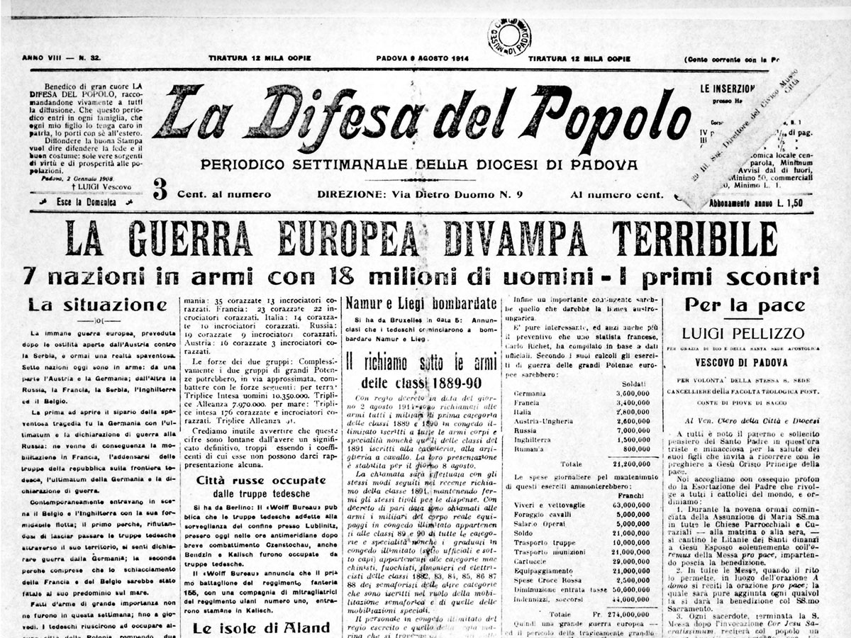 Iniziano col numero di domenica 27 luglio le iniziative editoriali pensate dalla Difesa del popolo per ricordare la Grande guerra. A distanza di un secolo, sulle pagine di oggi ritroveremo articoli, reportage, cronache delle pagine di ieri, disponibili anche per l'acquisto in formato digitale.