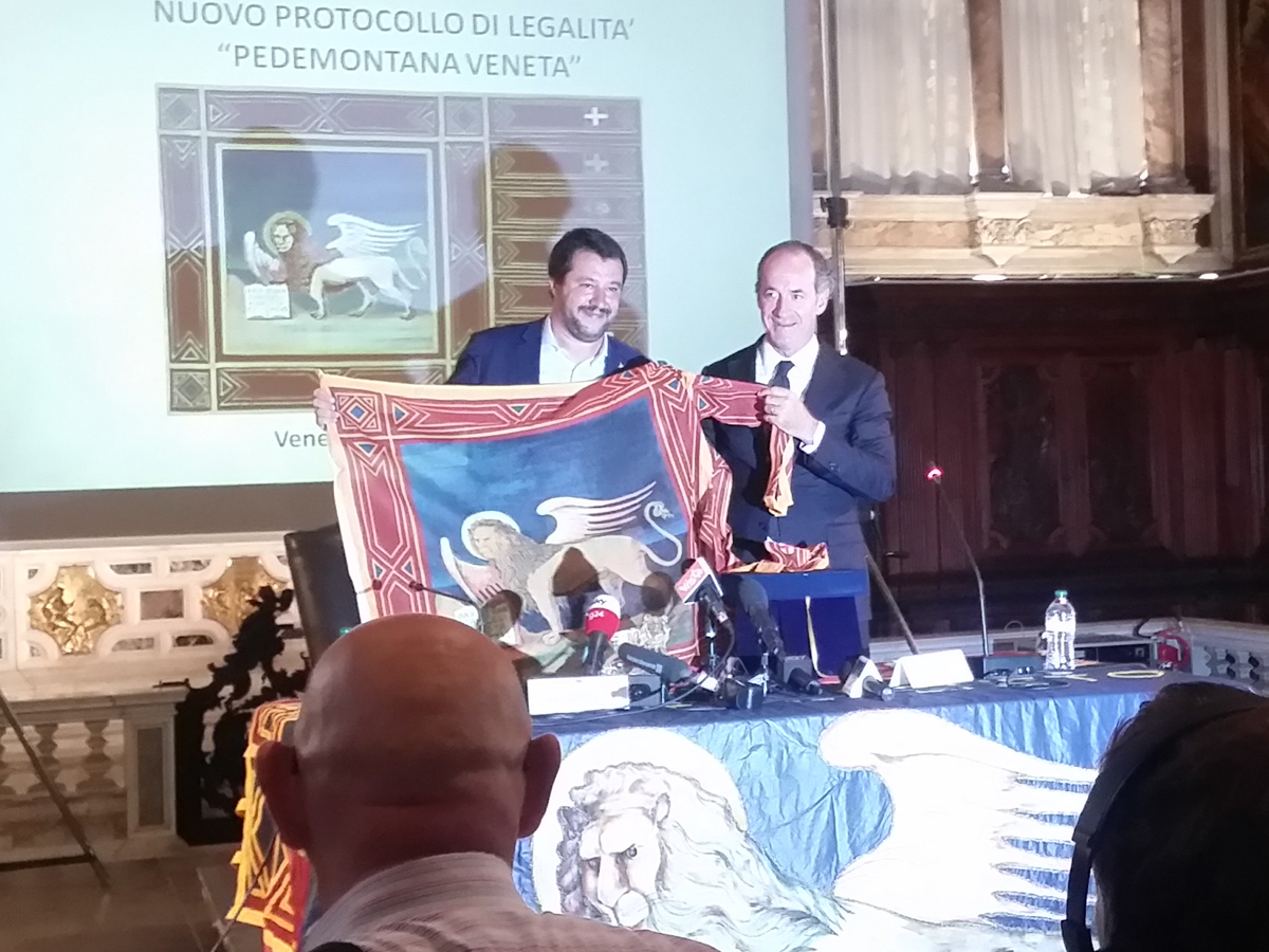 Il vicepremier stamani a Venezia per firmare i protocollo legalità della Pedemontana Veneta ha affrontato con i cronisti il tema caldo dei migranti, proprio mentre la ministra alla Difesa Elisabetta Trenta era a Vienna per rivedere i termini degli accordi sulla missione Sophia.