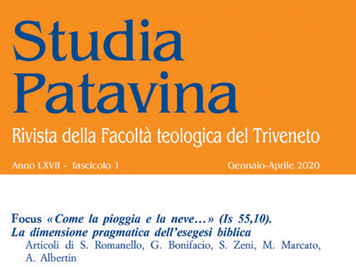 La dimensione pragmatica della Sacra Scrittura è al centro del focus del nuovo fascicolo (1/2020) della rivista della Facoltà teologica del Triveneto Studia patavina, dal titolo «Come la pioggia e la neve…» (Is 55,10). La dimensione pragmatica dell’esegesi biblica.
