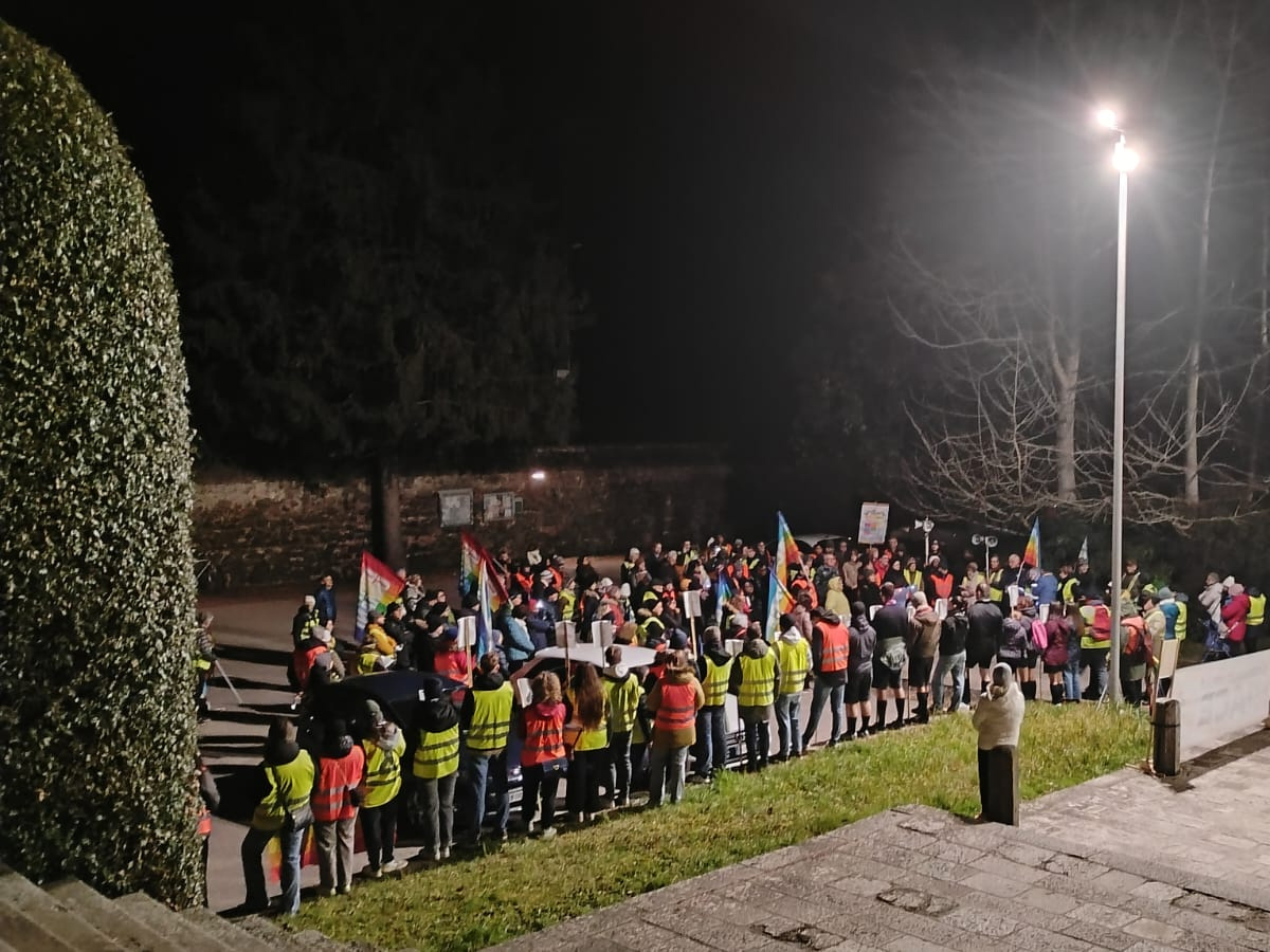 Tenere la luce accesa – fosse solo un lumicino di candela – e proteggerla dal buio dell’oblio e dell’indifferenza. Il calendario segna lunedì 24 febbraio 2025, da tre anni si ricorda l’invasione dei carri armati russi in Ucraina. E c’è chi da tre anni non resta in silenzio, non abbassa lo sguardo e continua a battersi. Nella sera di lunedì due fiaccolate, partite dalla parrocchia di Bresseo e da quella di Feriole, hanno camminato in direzione abbazia di Praglia con lo slogan “Fermiamo le guerre: il tempo della pace è ora”. Promossa dalle Acli, con l’adesione del movimento Uniti per la pace, della Società missioni africane, e supportate dalle parrocchie di Bresseo, Cervarese Santa Croce, Feriole, Fossona, Montemerlo, Praglia, Teolo, Villa, con il patrocinio dei Comuni di Selvazzano e Teolo, le fiaccolate hanno visto la partecipazione di molti giovani, dei gruppi scout, associazioni parrocchiali e non: «Un cammino tra preghiera e condanna – riflette Maurizio Drezzadore, presidente Acli Padova – per infondere la pace nel cuore degli uomini, ma anche per non dimenticare i quasi duecentomila morti, gli esuli forzati e la distruzione disumana di case e strutture sociali. Con questa fiaccolata ribadiamo la necessità di pace, ma una pace che non deve sottostare alle logiche imperiali di chi si crede forte sui deboli e di chi aumenta le spese in armamenti, a discapito della diplomazia». Nel sagrato dell’abbazia di Praglia, si sono succedute varie voci, tra cui l’intervento di suor Francesca Fiorese, direttrice dell’Ufficio diocesano per la pastorale sociale, giustizia, pace e salvaguardia del Creato della Diocesi di Padova, e le testimonianze dei padri della Sma: «Ai giovani che hanno preso parte alla fiaccolata ho ricordato alcuni momenti della guerra in Costa d’Avorio – racconta padre Dario Dozio della Sma e vice-responsabile dell’Ufficio per la pastorale della missione, per oltre tre decenni missionario in Costa d’Avorio – Guardavo in faccia questi ragazzi con il kalashnikov e dicevo “il nemico ha paura, fame e desideri come te”. Ecco, non dobbiamo smettere di guardare in faccia l’altro, il prossimo».