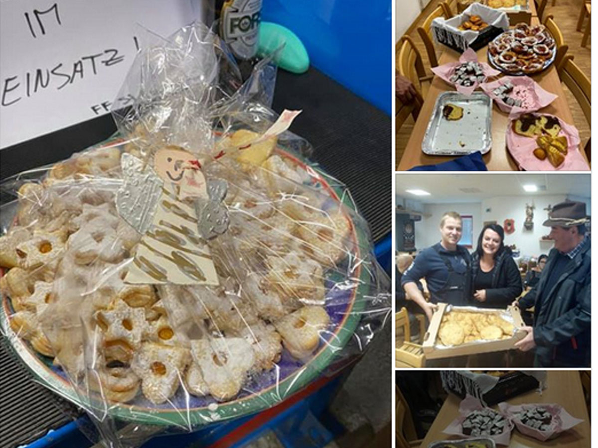 Lo scorso 18 novembre, al loro ritorno in caserma, i vigili del fuoco volontari di S. Lorenzo hanno trovato una sorpresa: ad accogliergli c’era la gente del paese, arrivata con biscotti, ciambelle marmorizzate, torte al cioccolato, frittelle e krapfen. In molte case è mancata sì la corrente, ma le stufe e i forni a legna hanno funzionato alla perfezione. “Ci sarebbero tante cose da raccontare stasera. Ma oggi vogliamo ringraziare le gente che ci ha accolto in caserma con tante prelibatezze”, scrivono nel post, che accompagna le foto dei dolci ricevuti.