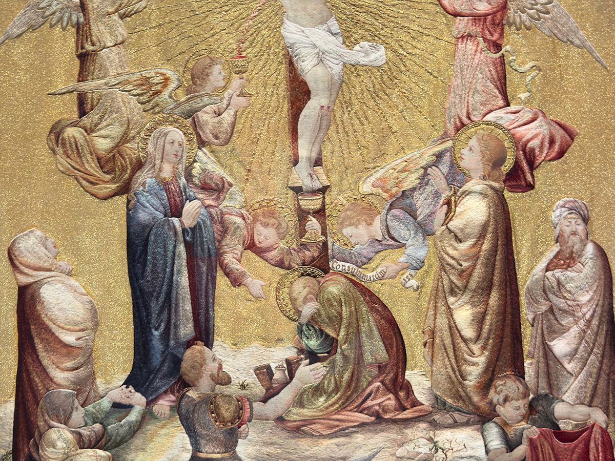 Le suore missionarie francescane di Maria hanno cucito un capolavoro dell’arte capace di stare accanto a opere di Bellini e Tintoretto rubando loro la meraviglia. È una pianeta ricamata per san Pio X, esposta in una sala della mostra “La Maddalena e la Croce”, che rimarrà aperta fino al 13 luglio al Museo di Santa Caterina di Treviso. Ovviamente ai piedi della croce c’è lei, l’apostola degli apostoli, che piange con il viso nascosto tra le mani. Un angelo vestito di violetto regge la scritta “Consummatum est”, mentre il suo compagno raccoglie in un ampio calice le gocce di sangue che escono dalle ferite del Signore. Il Figlio di Dio, caduto nella morte come in un sonno di indicibile tranquillità, è re e centro dell’opera. La catena degli angeli ritaglia una mandorla nell’oro dello sfondo e Gesù è di una bellezza radiosa e mite, il corpo perfettamente obbediente a una logica che è lui stesso e che gli uomini intravvedono solo in mezzo alle nubi dell’inquietudine. Il fiotto che sgorga dal suo costato è pieno di teologia e di Scrittura: una treccia di rosa e di bianco, sangue e acqua, che un altro calice, in mano all’angelo più giovane di tutti, beve per l’eternità. Punto dopo punto, l’arte fa sì che ogni creatura intorno al Creatore abbia un’emozione leggibile sul viso. La Madre di Dio, in piedi a mani giunte, incapace di lasciarsi distrarre dai dubbi. Giovanni, che già sa contemplare il sangue raccolto nel calice e non più il volto umano del Signore. Il centurione caduto in ginocchio. Le donne impaurite e attratte da quel trionfo davanti a cui il mondo non può che provare imbarazzo. I tre soldatacci che si giocano ai dadi la tunica di Gesù, reliquia che ha custodito il mistero del Dio fatto carne. Il peggiore: il sacerdote che si volta sdegnoso a braccia conserte, come uno che ha liquidato un concorrente neanche degno di essergli messo a paragone. Un sacro anonimato protegge l’identità delle artiste che hanno ricamato questo capolavoro perché il Santo Padre potesse celebrare degnamente la liturgia. Per loro ci dev’essere solo il nome di figlie.